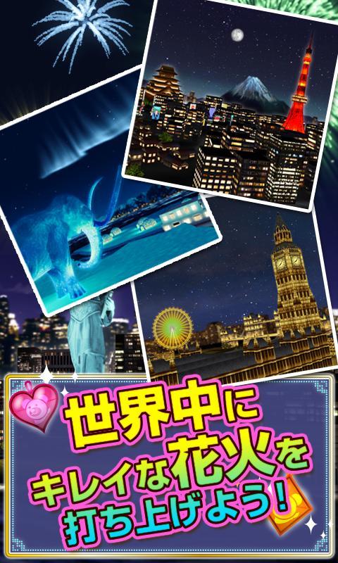 花火を打ち上げる舞台は、世界の名所をモチーフにした美しい夜景ばかり。