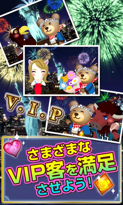 ◆クマをはじめ、可愛らしい動物キャラクター(VIP)がたくさん登場★奇麗な花火で全員を満足させて、記念写真をコレクションしよう!