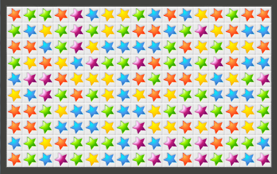 同じ絵柄を多くつないで一度に消すように組み立てるゲームです。