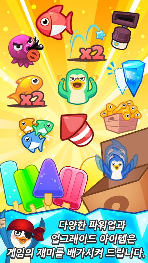 - 문어 얼룩 제거, 고드름 감소, 로켓 등 다양한 파워업 아이템