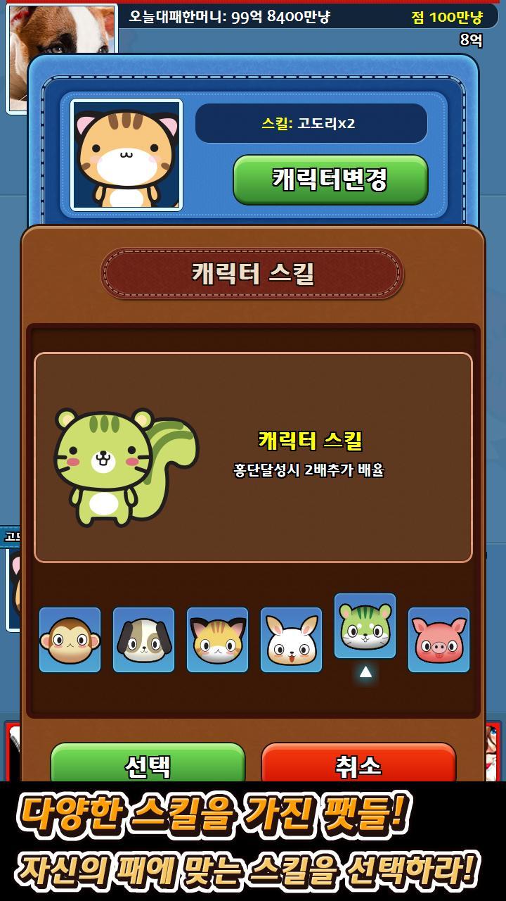 - 게임시작시 다양한 스킬을 가진 팻을 선택해서 배율을 높일수 있어요~