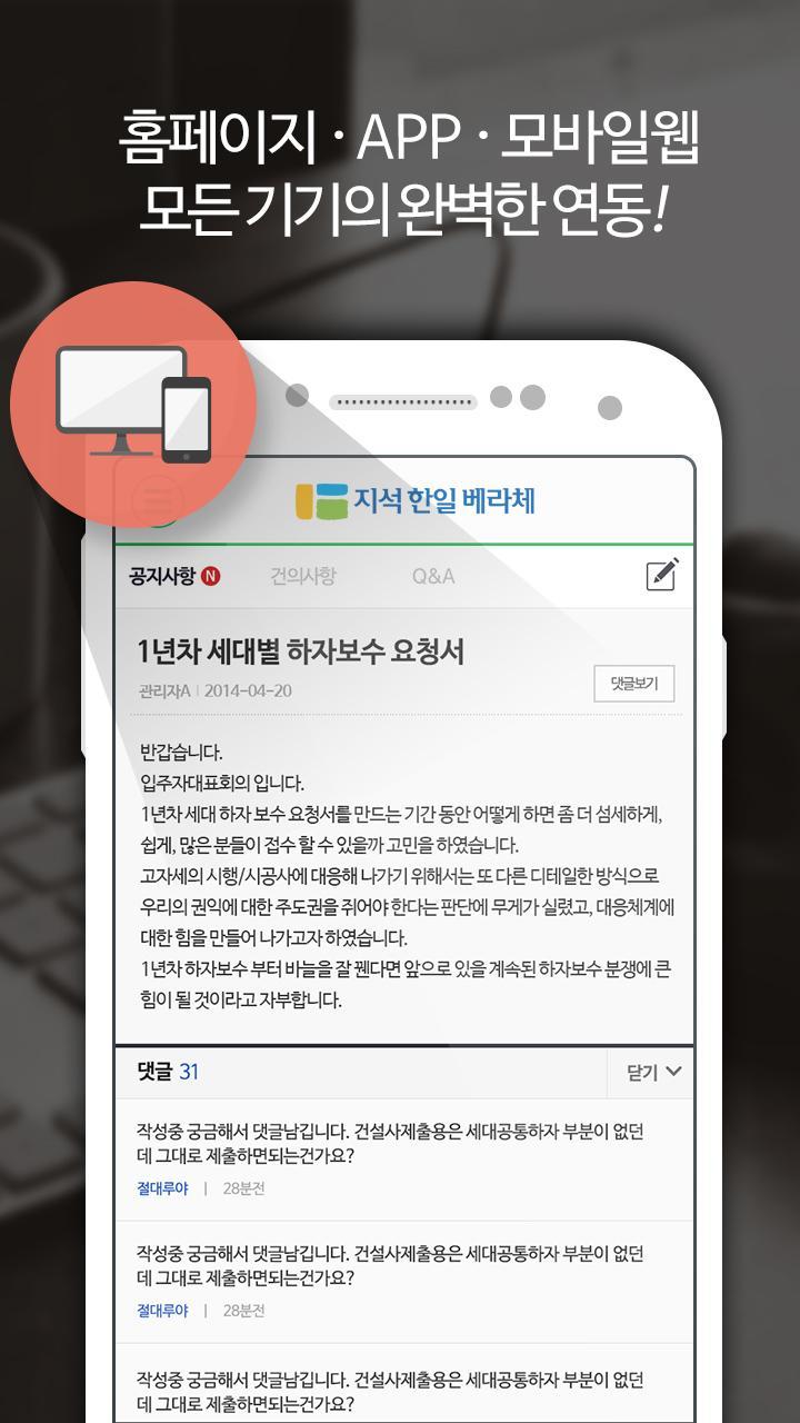 보다 원활한 소통과 편의를 위해 지석 한일베라체 아파트만의 앱을 서비스 합니다.