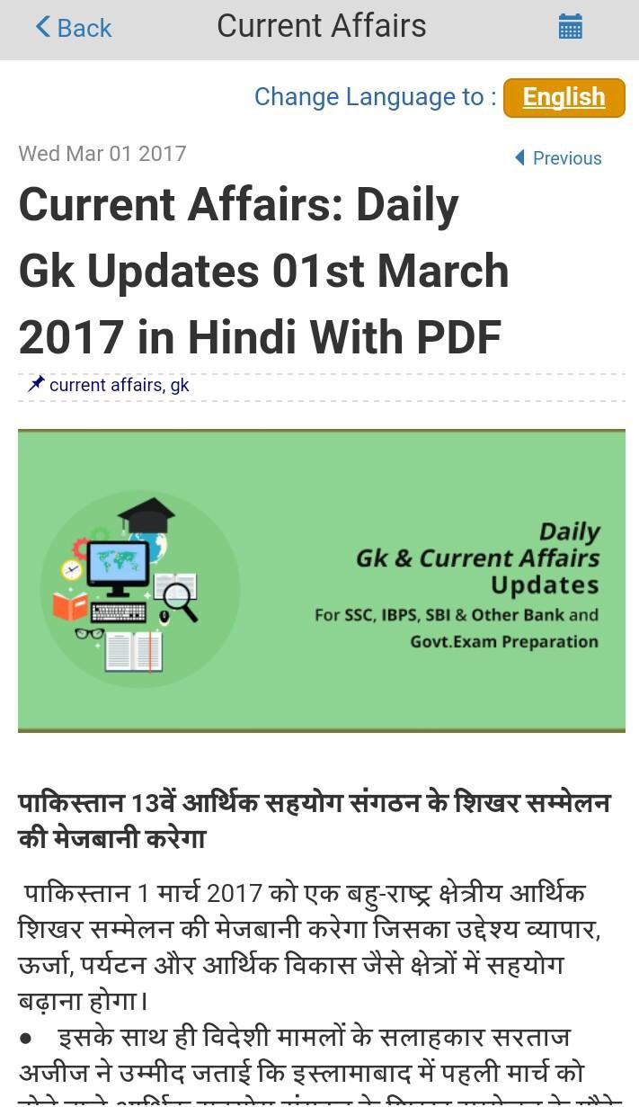 -Application also has Current Affairs in Hindi and English as well.