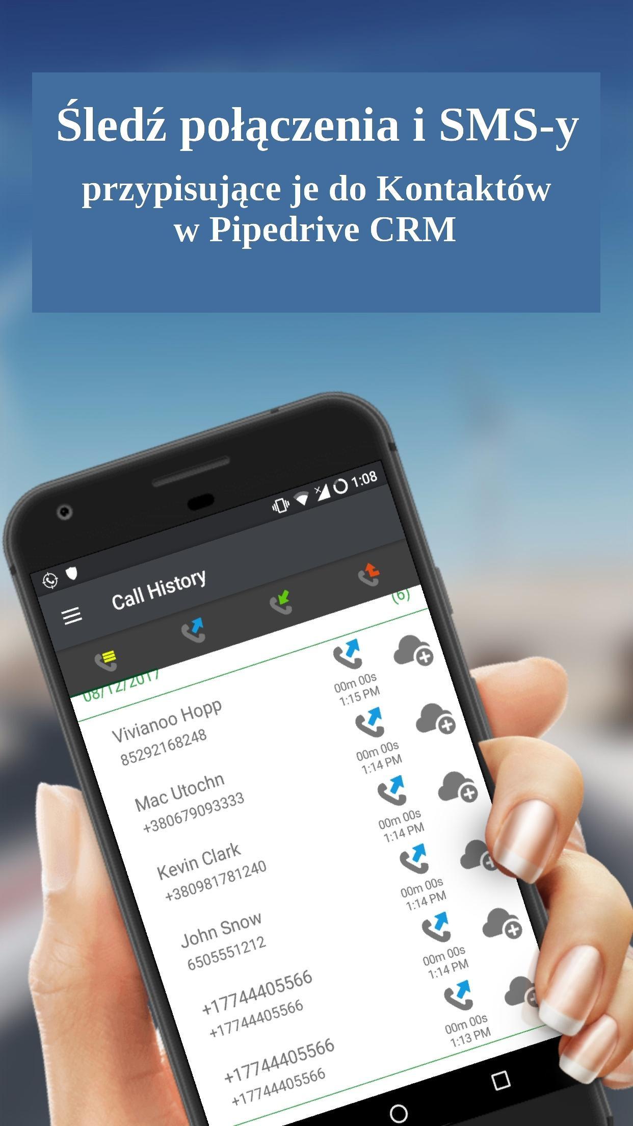 Tracker połączeń dla Pipedrive CRM to aplikacja mobilna przeznaczona do przesyłania informacji o połączeniach przychodzących i wychodzących ze smartfonów do systemu CRM (zarządzanie relacjami z klientami). Jest to dokładnie to, czego potrzebujesz, jeśli codziennie wykonujesz wiele połączeń ze względu na działalność biznesową. Możesz przechowywać wszystkie dane o połączeniach w jednym miejscu - w systemie CRM.