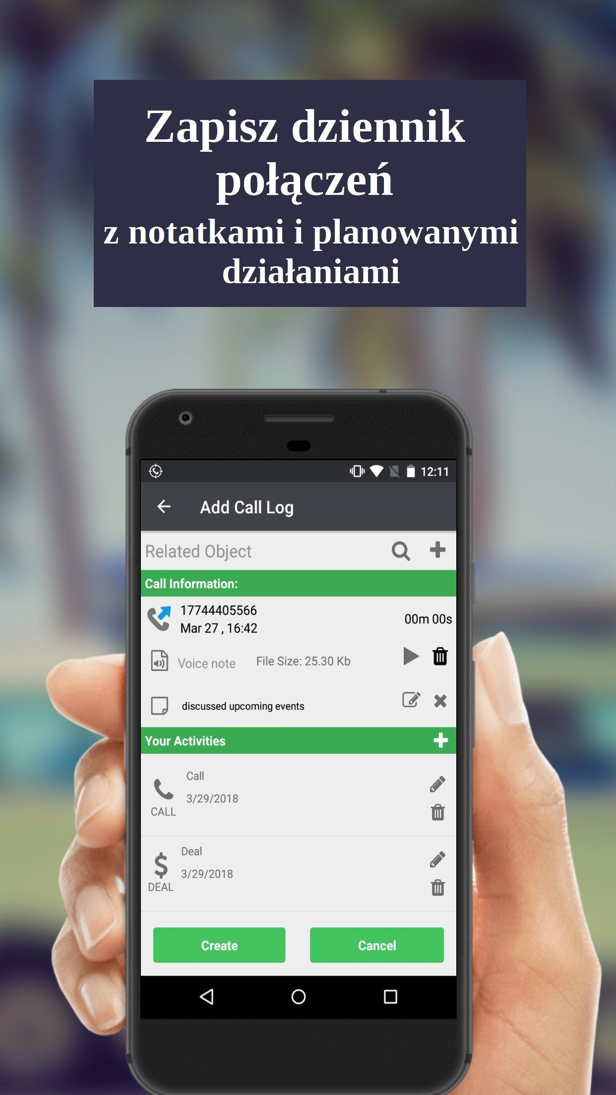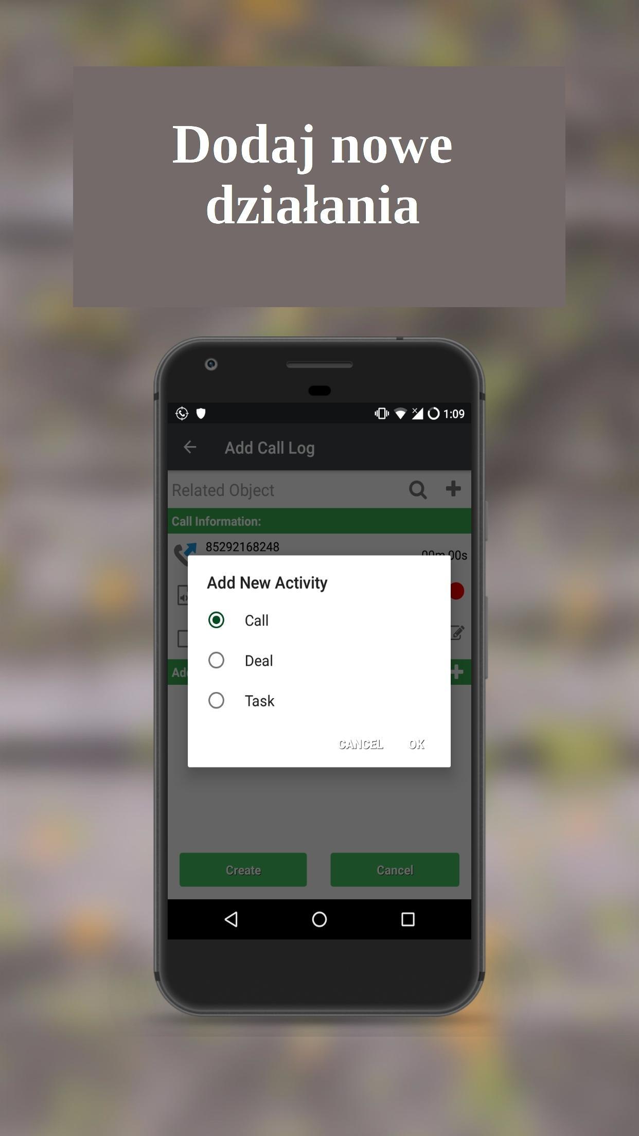 Po każdym połączeniu aplikacja poprosi Cię - zapisz informacje o połączeniu do CRM, czy nie. Możesz później wejść do aplikacji i wybrać dzienniki połączeń, które chcesz zapisać w CRM.