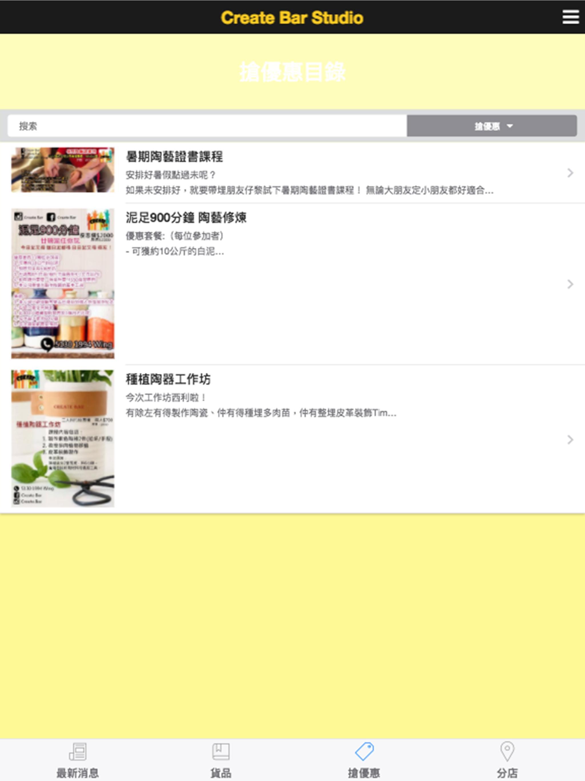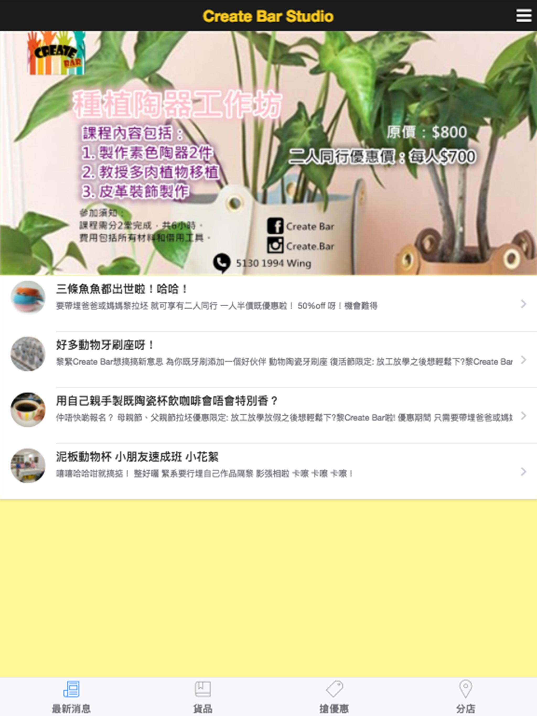 你只需要下載Create Bar Studio 就可以隨時隨地緊貼 Create Bar Studio的最新最快、最豐富的創作資訊。除了課程資料、上課時間,更會有各種優惠、創作技巧分享等資訊,所以你們要勿切留意啦!