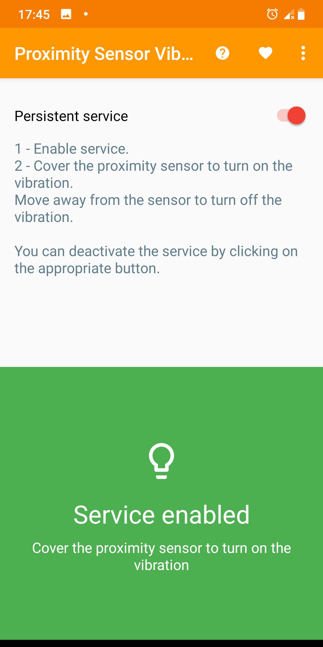 This app allows you to turn on the vibration when you cover the proximity sensor.
