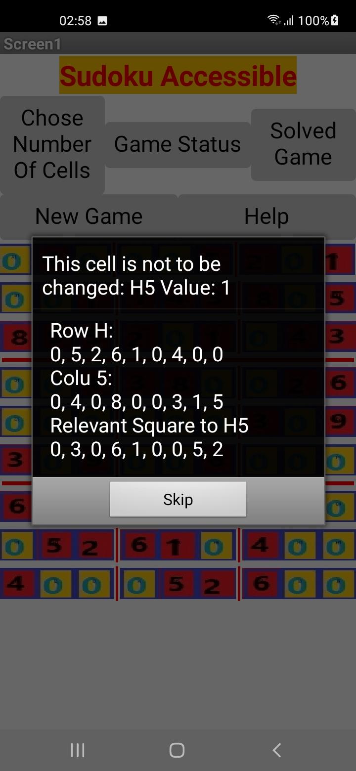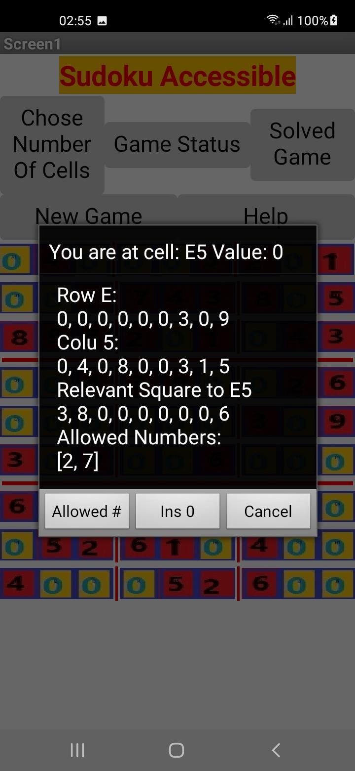 * Aplikacja wyświetla informacje o: Liczbach w rzędzie, kolumnie i kwadracie 3x3, gdy jesteś w określonej komórce