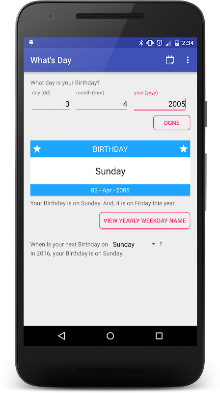 Just enter the date and find out the day of the week and other fun facts about your specific date, this app can help you to find it out.