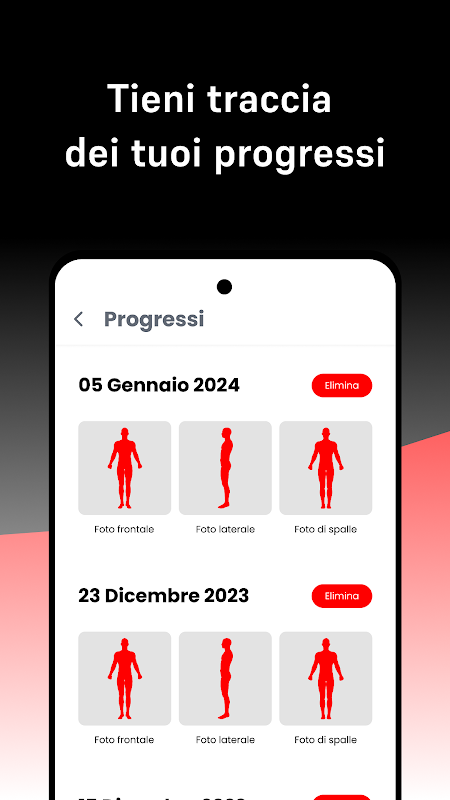 • Przesyłaj zdjęcia swoich postępów fizycznych na przestrzeni czasu.