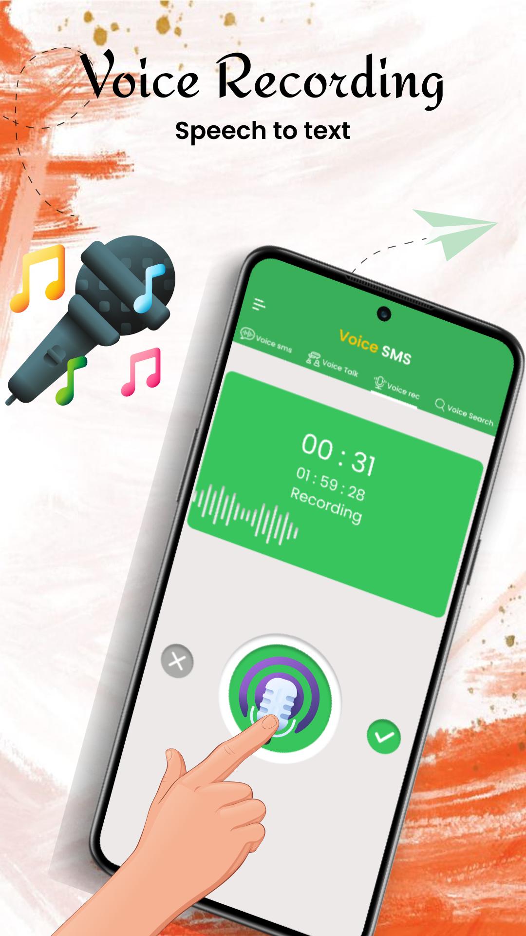 Uwolnij swoją kreatywność i nadaj swoim wiadomościom osobisty charakter dzięki naszej funkcji nagrywania głosu. Uchwyć niuanse swoich emocji, udostępnij ekscytujące wiadomości głosowe lub po prostu opowiedz historię za pomocą magii zamiany głosu na tekst. Aplikacja do pisania wiadomości głosowych lub tekstowych umożliwia płynne nagrywanie i wysyłanie wiadomości głosowych, dzięki czemu komunikacja jest bardziej wyrazista i wciągająca. Nagrywanie głosu to nie tylko słowa; chodzi o przekazywanie tonu i emocji kryjących się za każdym SMS-em głosowym, wzmacniając głębszą więź między Tobą a Twoimi bliskimi.