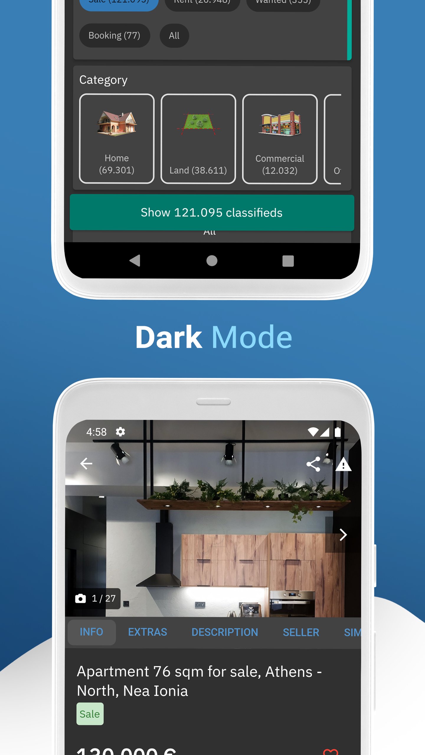 ✔Seller: In each classified you can check Seller details if he is real-estate agent or individual person, a real-estate agent website with more classifieds and get driving locations.