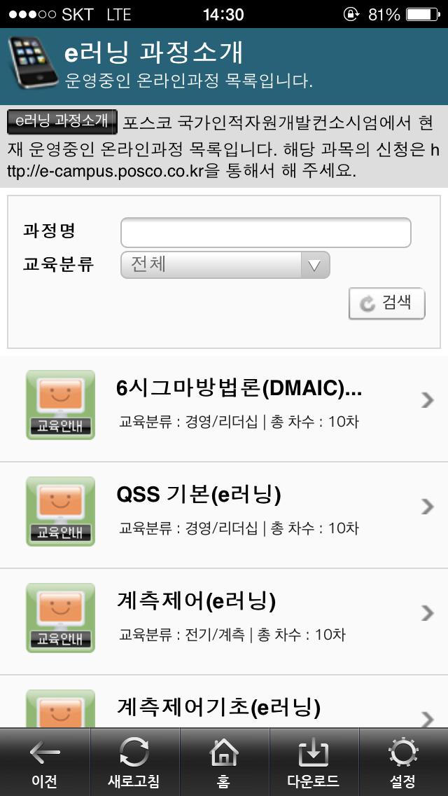 개편된 POSCO EDUCS 접속용 어플리케이션은 POSCO에서 운영중인 국가인적자원개발 컨소시엄에서 제공하고 있는 모바일 서비스를 원활하게 지원하기 위한 어플리케이션입니다.