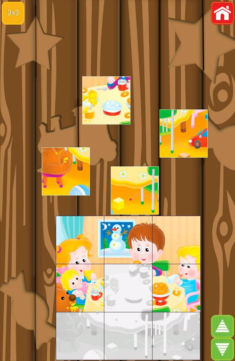 Picture puzzle / jigsaw game: Kids, reassemble the scrambled pictures by dragging the tiles to their correct place on the canvas. You can change the number of the pieces can be only a few for a baby or a toddler and more for a bigger kid.