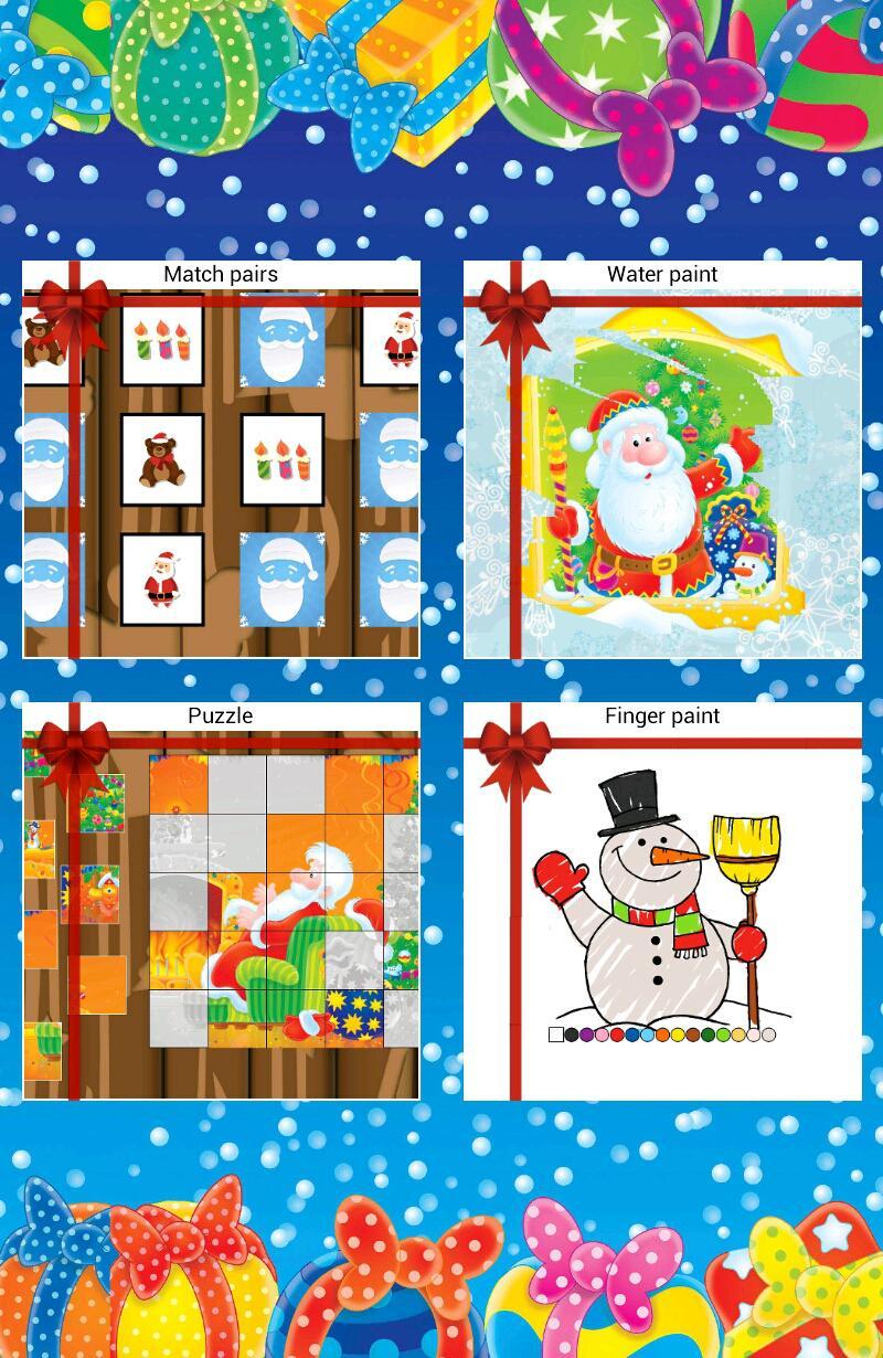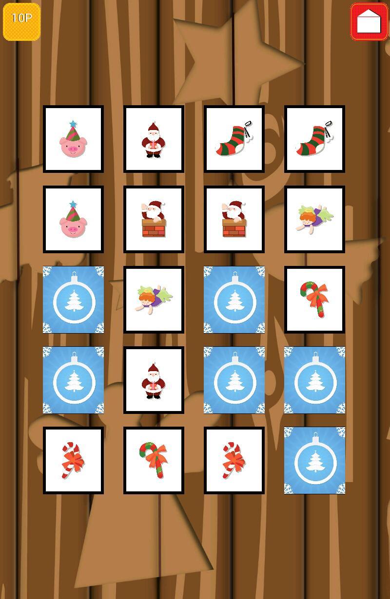 Match the pairs game: Kids, tap the screen to reveal pictures of the cartoon characters, gifts, Santa Claus, Christmas tree, etc and exercise your memory by matching the pairs of identical pictures. You can also select how many pairs you will play with on the top left corner of the game.