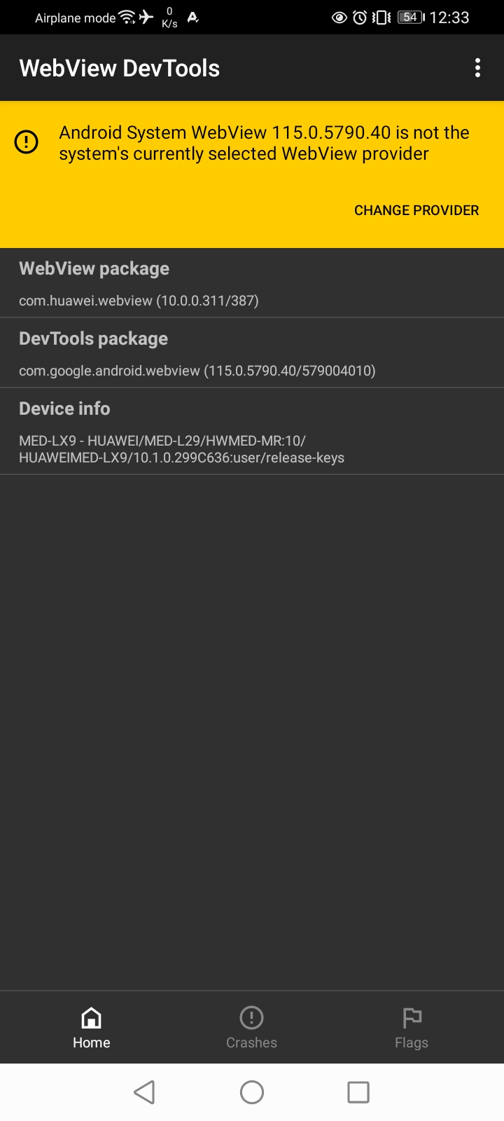 Hey! I think I found a glitch??? Why does it says "Android System Webview 115.0.5790.40 is not the system's currently selected Webview provider"? Even I click And clicked Huawei One's nothing happens I guess can you please help me?