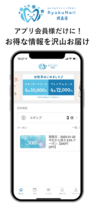 You can receive the latest information and great deals from [Self Whitening Salon RyukuNail Haijima Branch] through the app. You can also check the menu, your desired time slot, and make reservations from your smartphone at any time. By installing the app, you can use [Self Whitening Salon RyukuNail Haijima Branch] more conveniently and close to you.