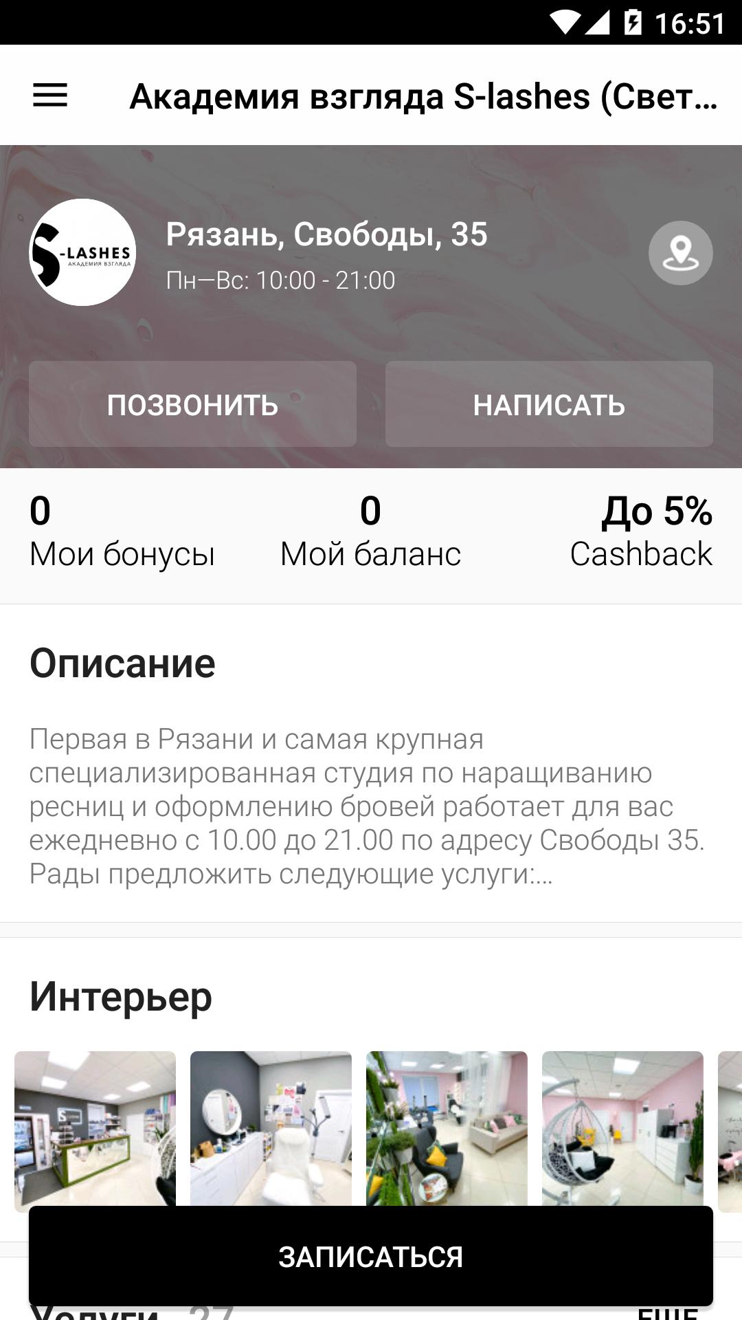 - ознакомиться с детальной информацией о нашем салоне (адрес с указанием маршрут, график работы, контакты, перечень услуг с указанием стоимости и длительности, примеры работ мастеров, отзывы);