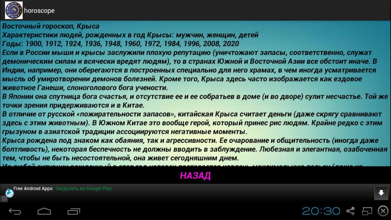 Историческую версию Восточный Гороскоп можно получить на Android