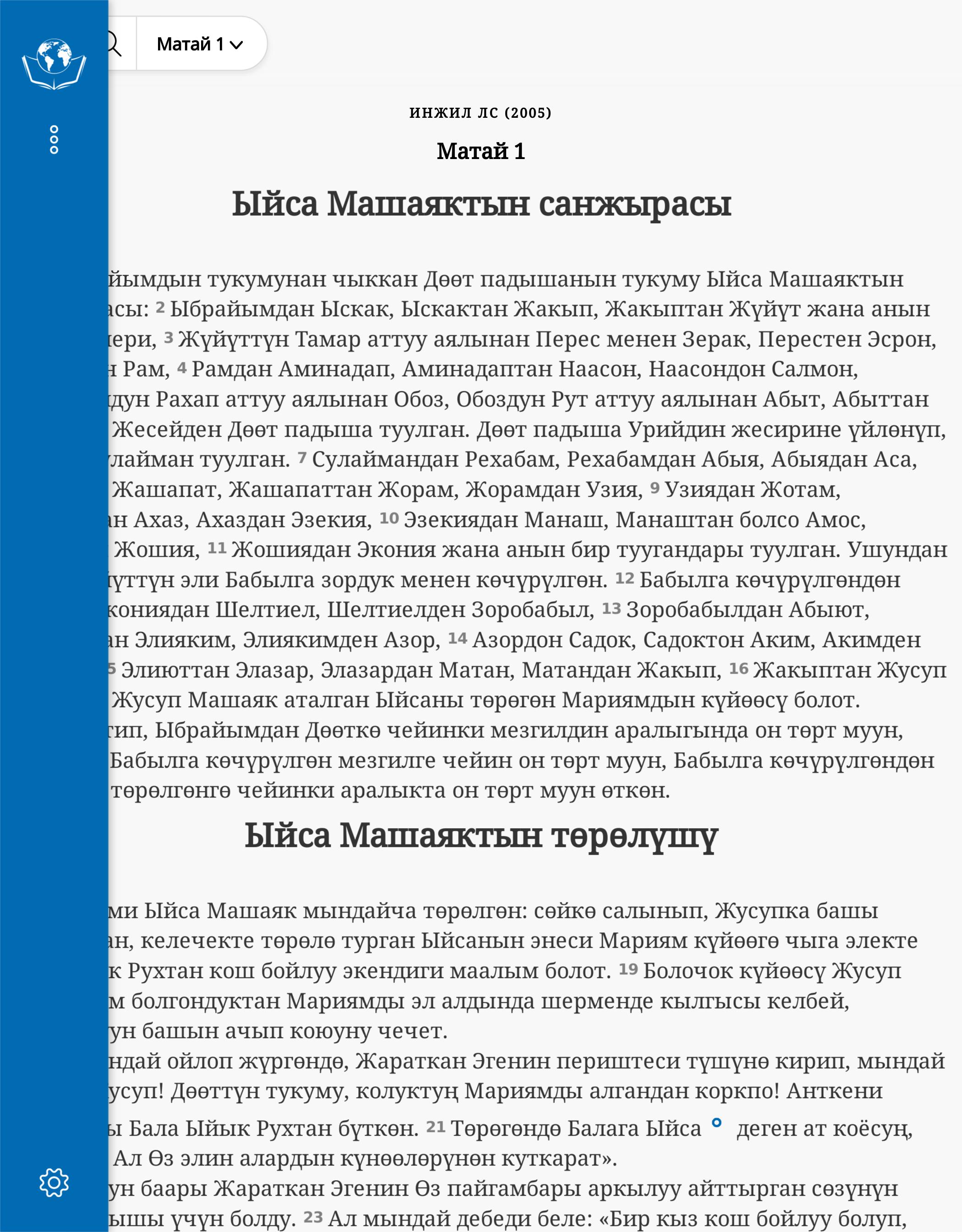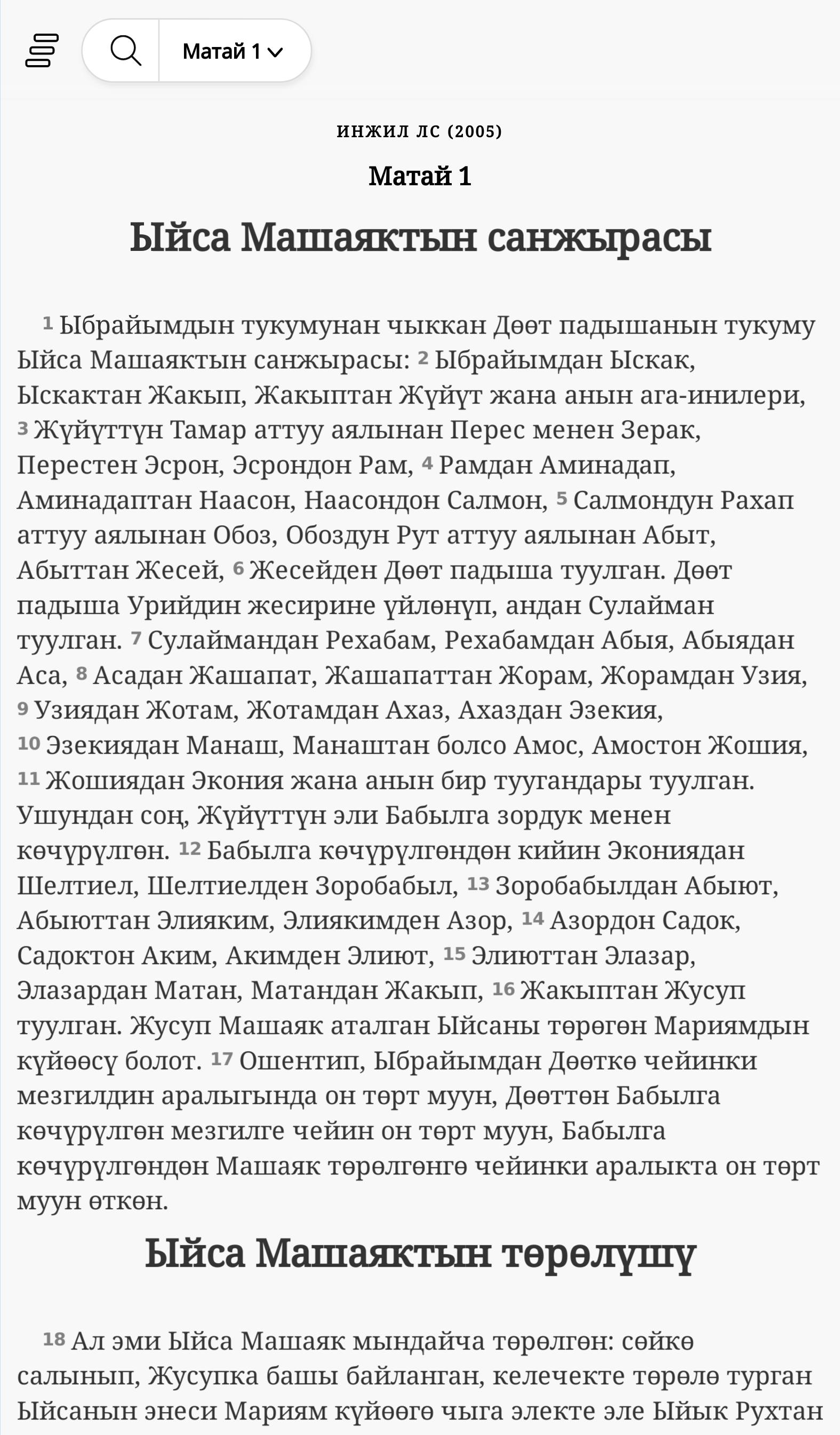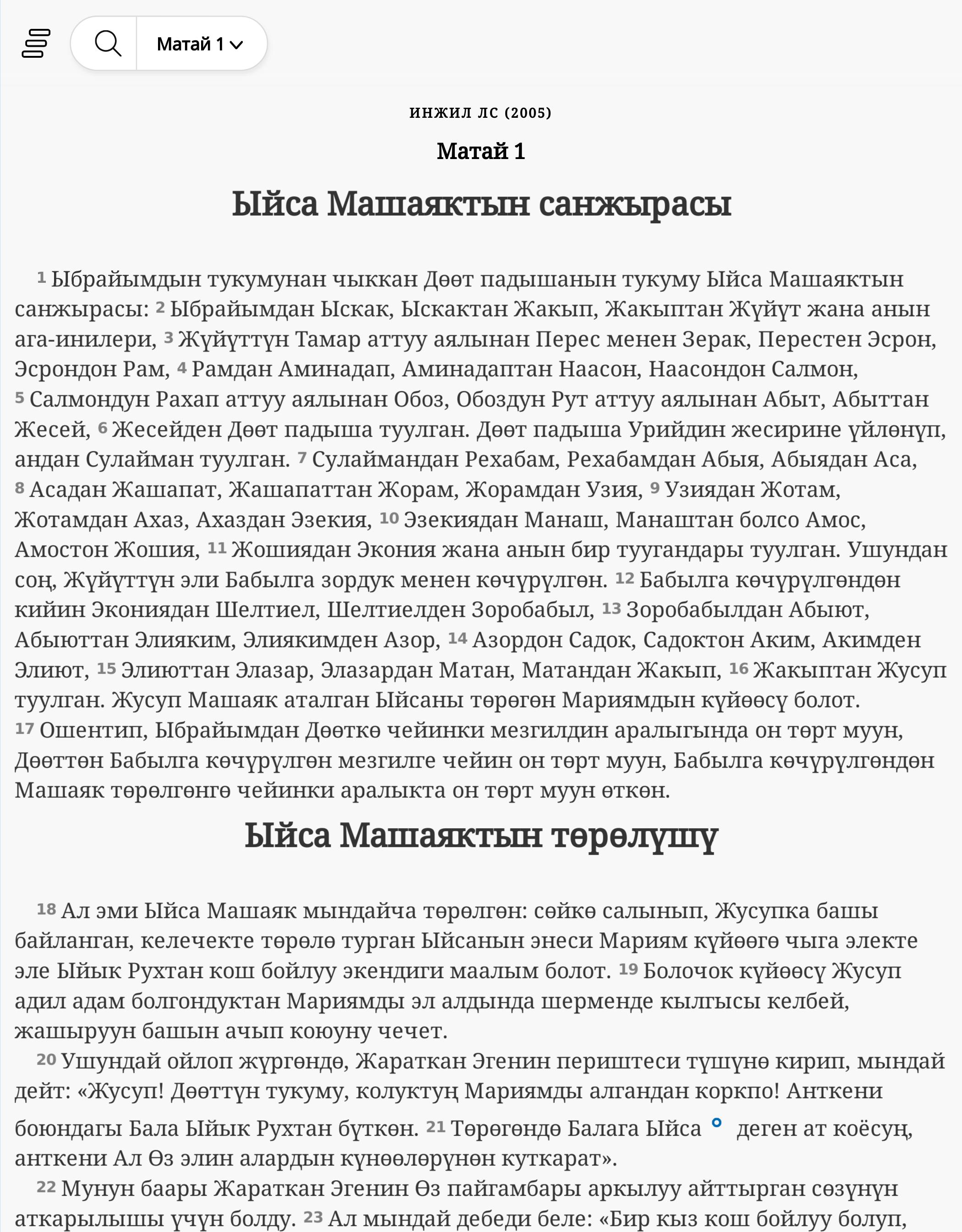 Историческую версию Кыргыз тилиндеги Ыйык Китеп можно получить на Android