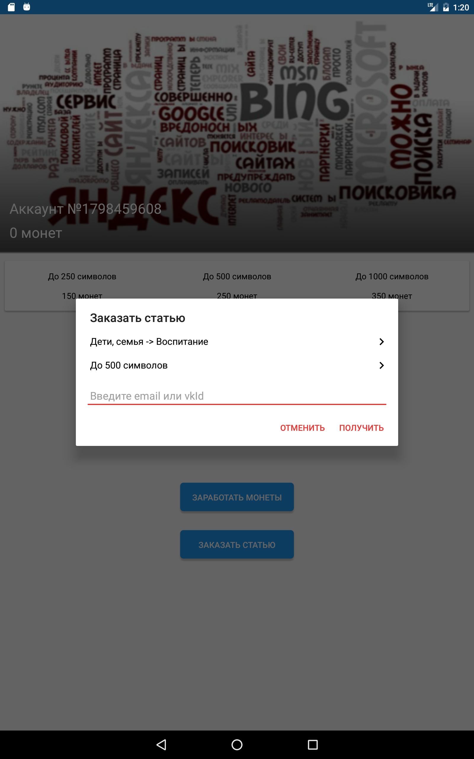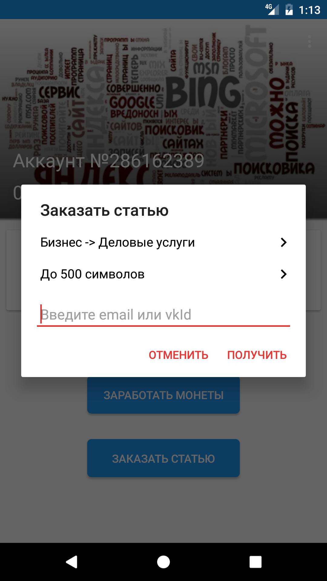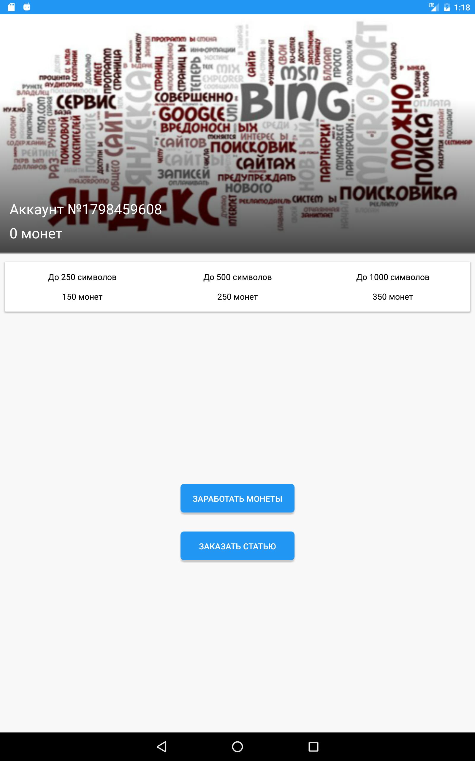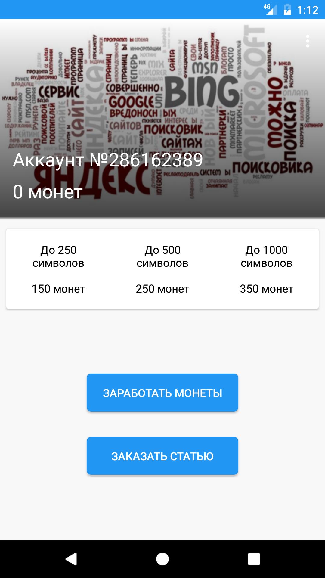 простейшие задания в нашем приложении за выполнение которых Вы получите внутреннюю валюту, которую в свою очередь сможете обменять на уникальные тексты с интересующим Вас количеством символов.