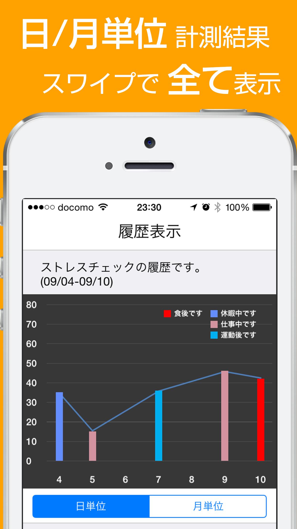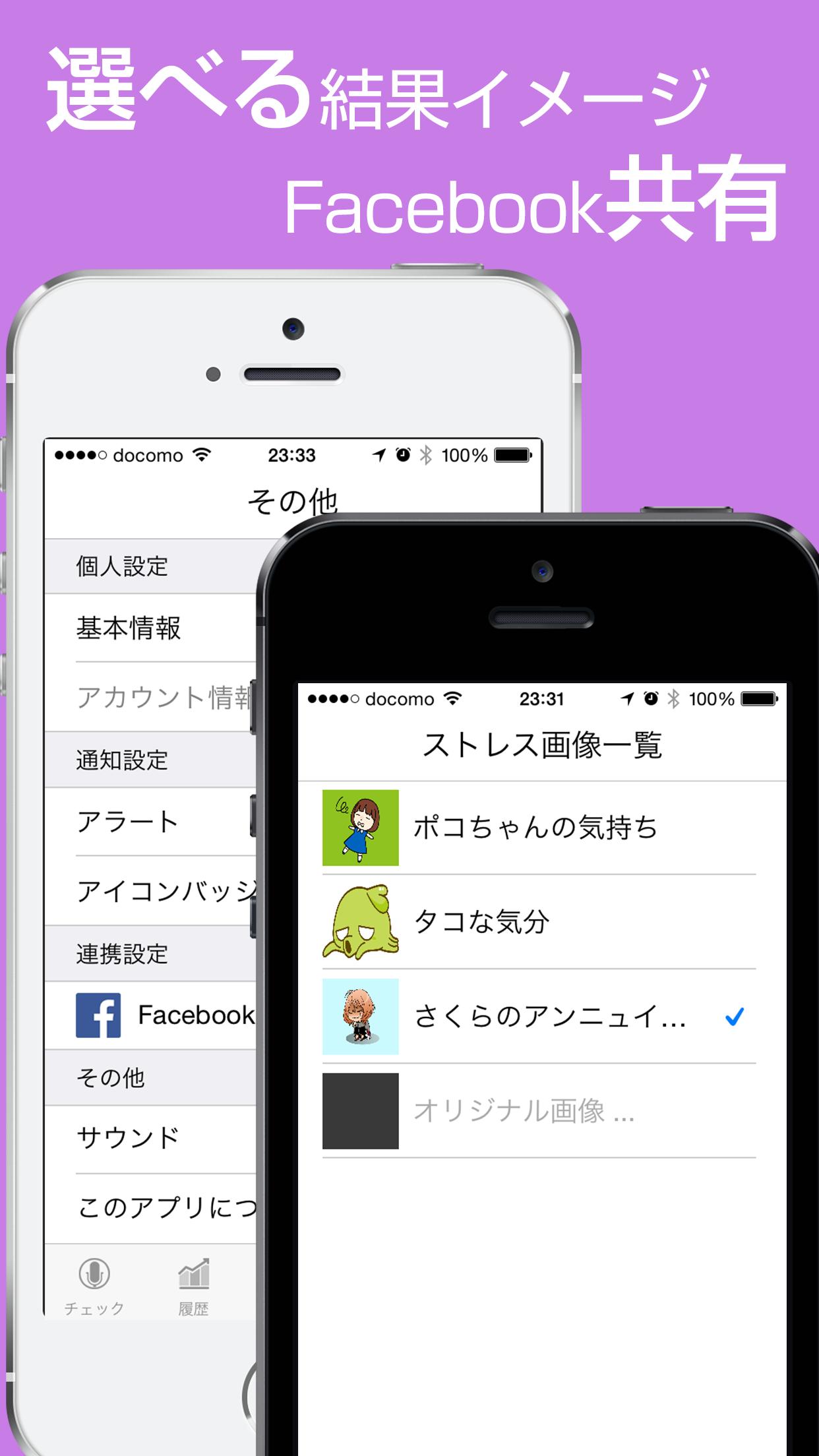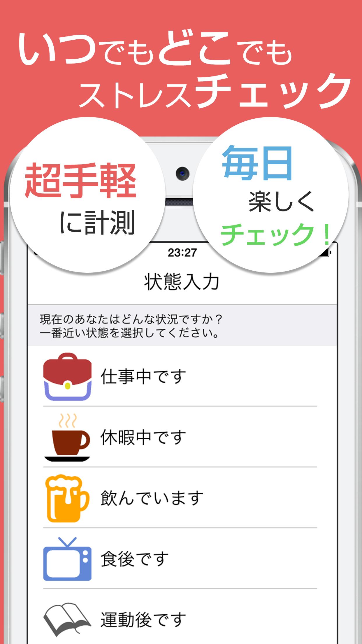 ・毎日のストレス状態をFacebookに投稿し友達と情報共有できます。