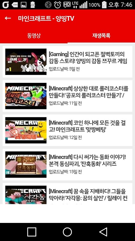 유튜브 게임영상 모음, 마인크래프트, 마크, LOL, 롤, 리그오브레전드, 던파, 양띵, 악어, 대도서관등 게임 플레이영상을 모아놓은앱입니다.