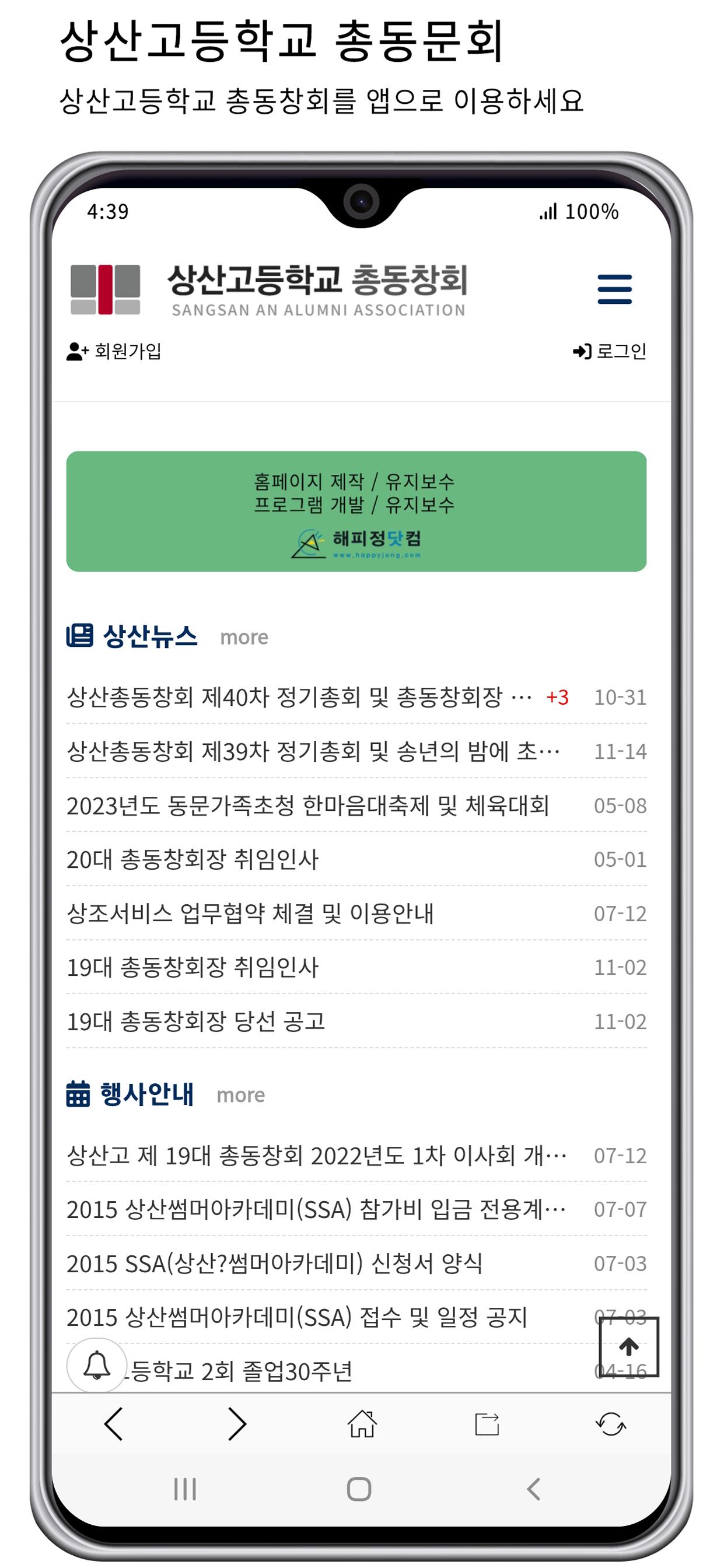 Официальное приложение Ассоциации выпускников старшей школы Сансан предназначено для укрепления общения и налаживания связей между выпускниками.