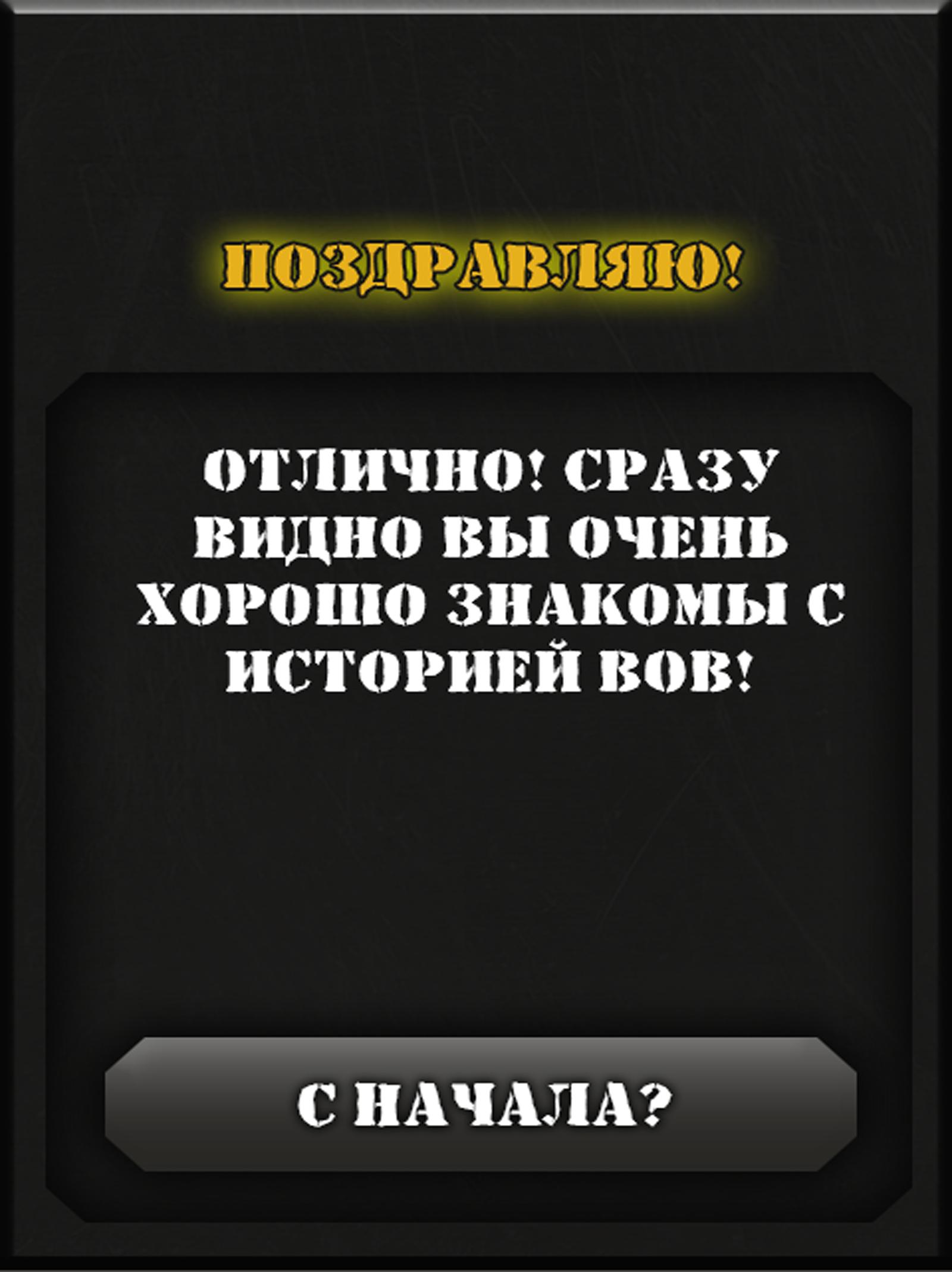 Пройдите эту викторину для того что-бы узнать как хорошо вы знаете историю ВОВ. В этой викторине собраны различные вопросы связанные с Великой Отечественной войной. Вопросы разной сложности позволят определить Ваши знания.Last updated on 07/04/2018