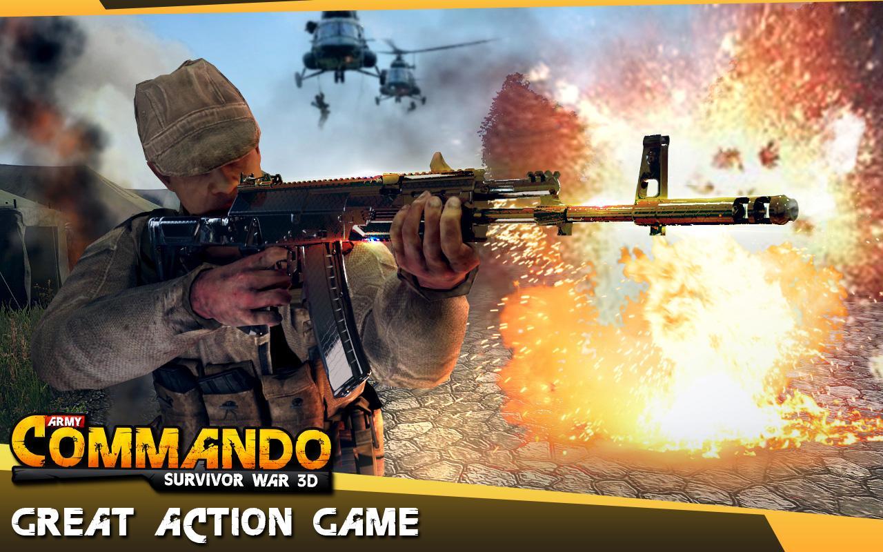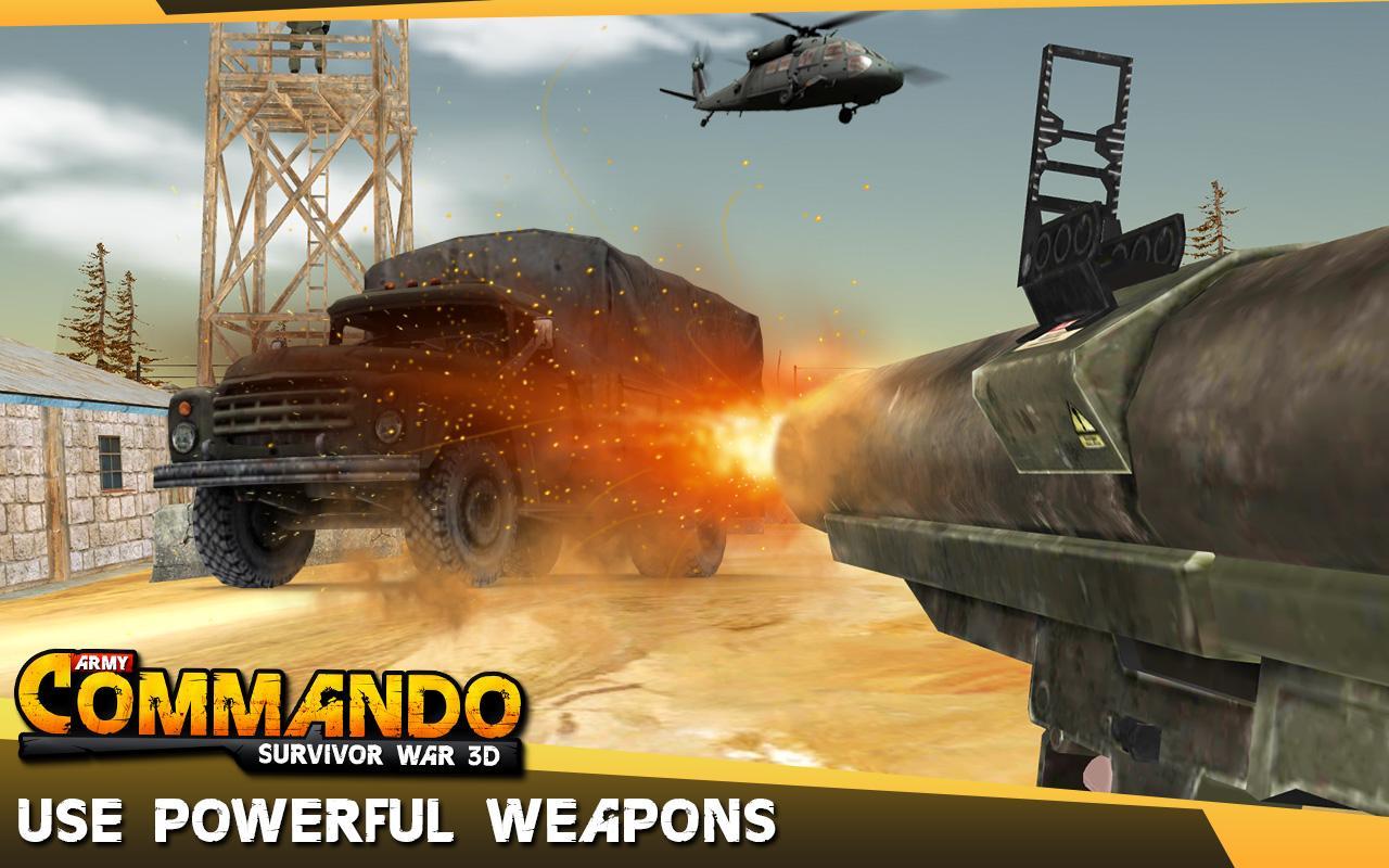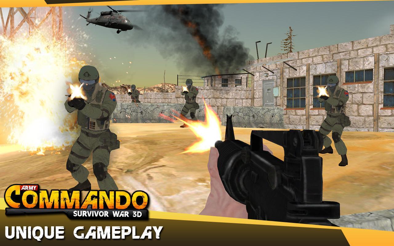 Army Commando Survivor War 3D имеет сложных миссий. Каждая миссия отличается и гораздо сложным, как вы прогресс в игре.