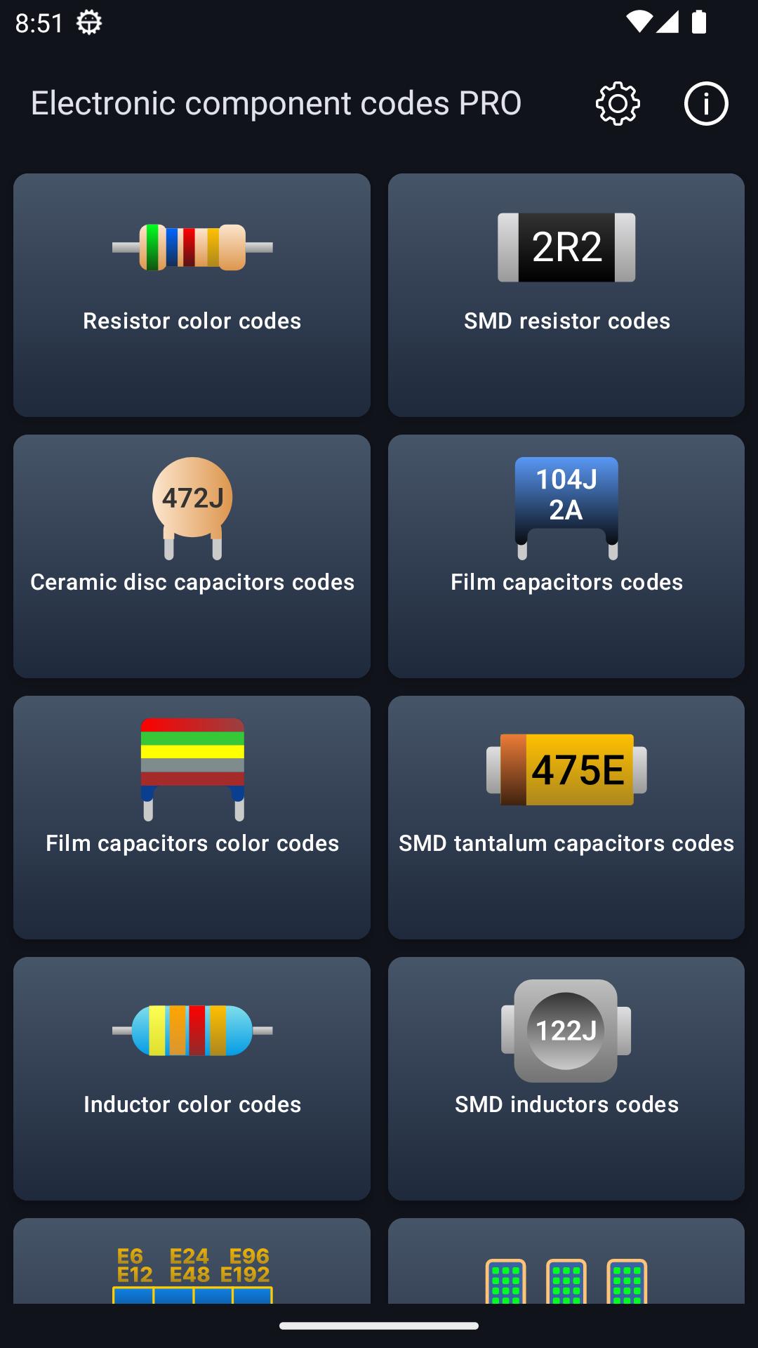 Electronic Component Codes Pro — удобный инструмент для определения значений сопротивления, емкости и индуктивности по маркировке компонентов.