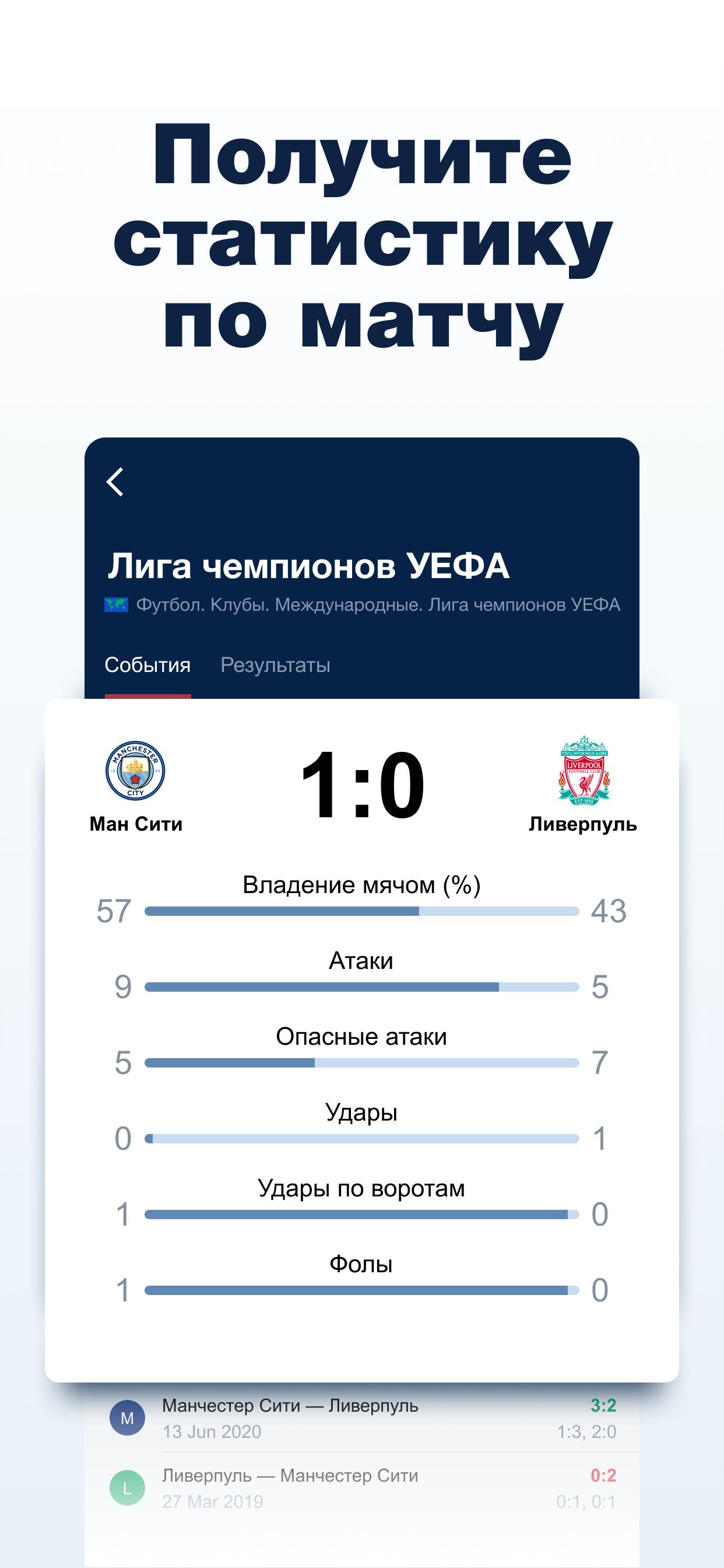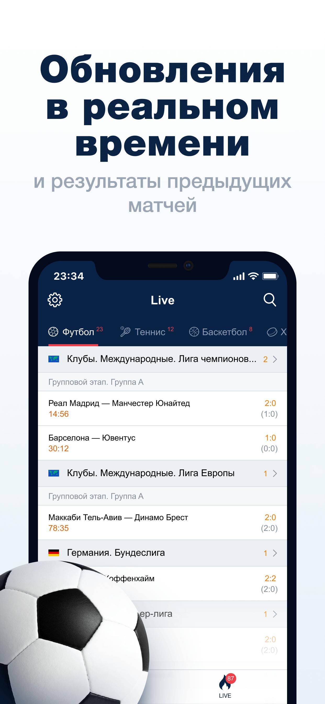 Получайте мгновенный доступ к информации о матчах в режиме live и изменениях в лигах и турнирах, включая Премьер-лигу, Лигу чемпионов, НБА и КХЛ.