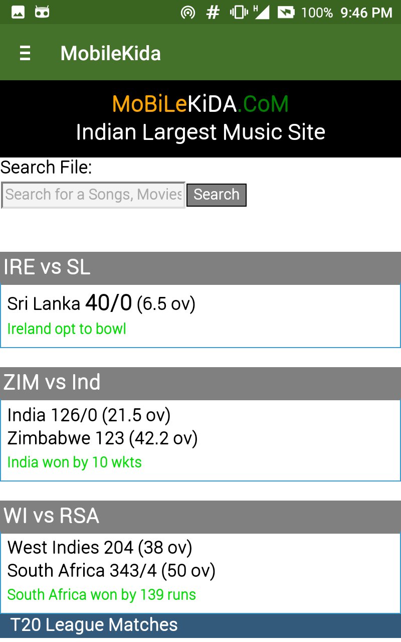 MobileKida.com is Indian no.1 music search and download portal. This application gives you one tap access to MobileKida.