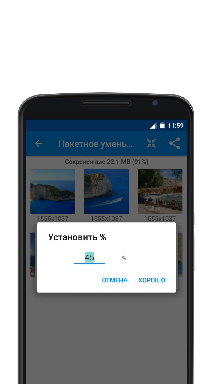 Уменьшение изображений для устройств Android это полезное приложение, которое позволяет вам уменьшать изображение просто выбрав нужное разрешение. Сжатие изображений это бесплатное приложение, разработанное для того, чтобы помочь вам уменьшать изображения быстро и удобно (легко). Сжатие изображений выполняет простую задачу, а именно уменьшает изображение или уменьшает картинку или уменьшает фото очень легким и быстрым способом. Это приложение для уменьшения изображений сохраняет пропорции картинки, предоставляя список разрешений, который основывается на разрешении камеры. Уменьшение изображений помогает уменьшить ваши фото перед перед их размещением на ВКонтакте, Instagram, Facebook, Twitter, Pinterest, Reddit, Tumblr, Google+, KakaoTalk и т.д.