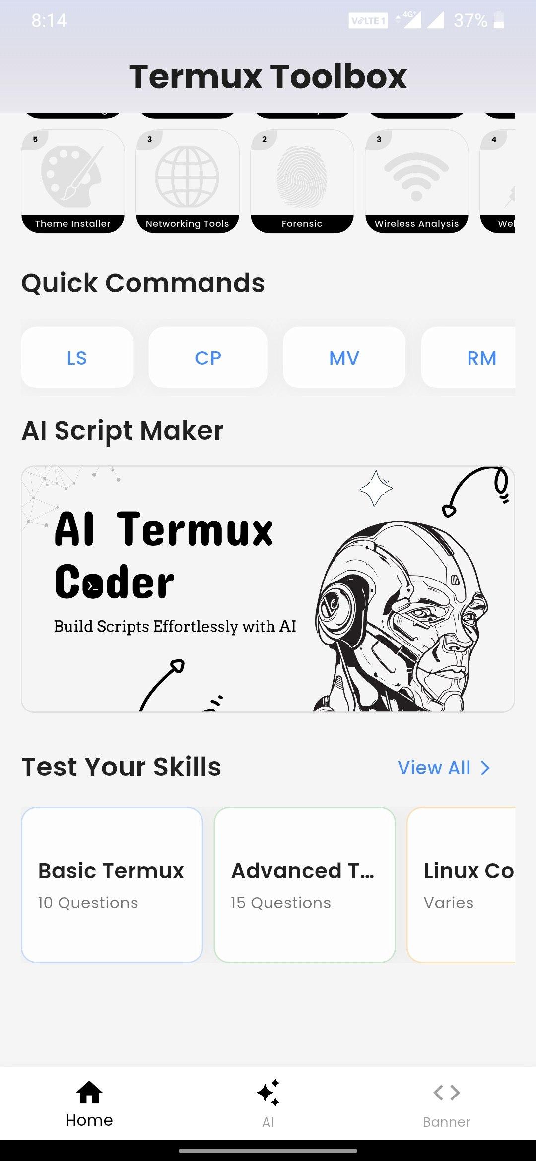 Освойте Termux быстро с помощью этого универсального приложения. Получите руководство по искусственному интеллекту, установку команд одним касанием и учебные пособия для изучения Termux с нуля. Создавайте сценарии, создавайте баннеры для филетов и проверяйте навыки с помощью викторины. Идеально подходит как для новичков, так и для профессионалов — скачайте сейчас, чтобы раскрыть весь потенциал Termux!