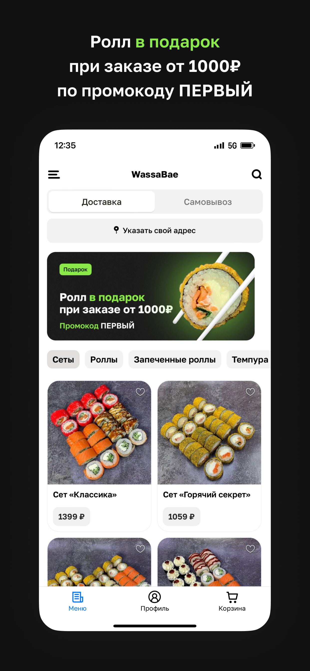 Историческую версию WassaBae • Доставка роллов можно получить на Android