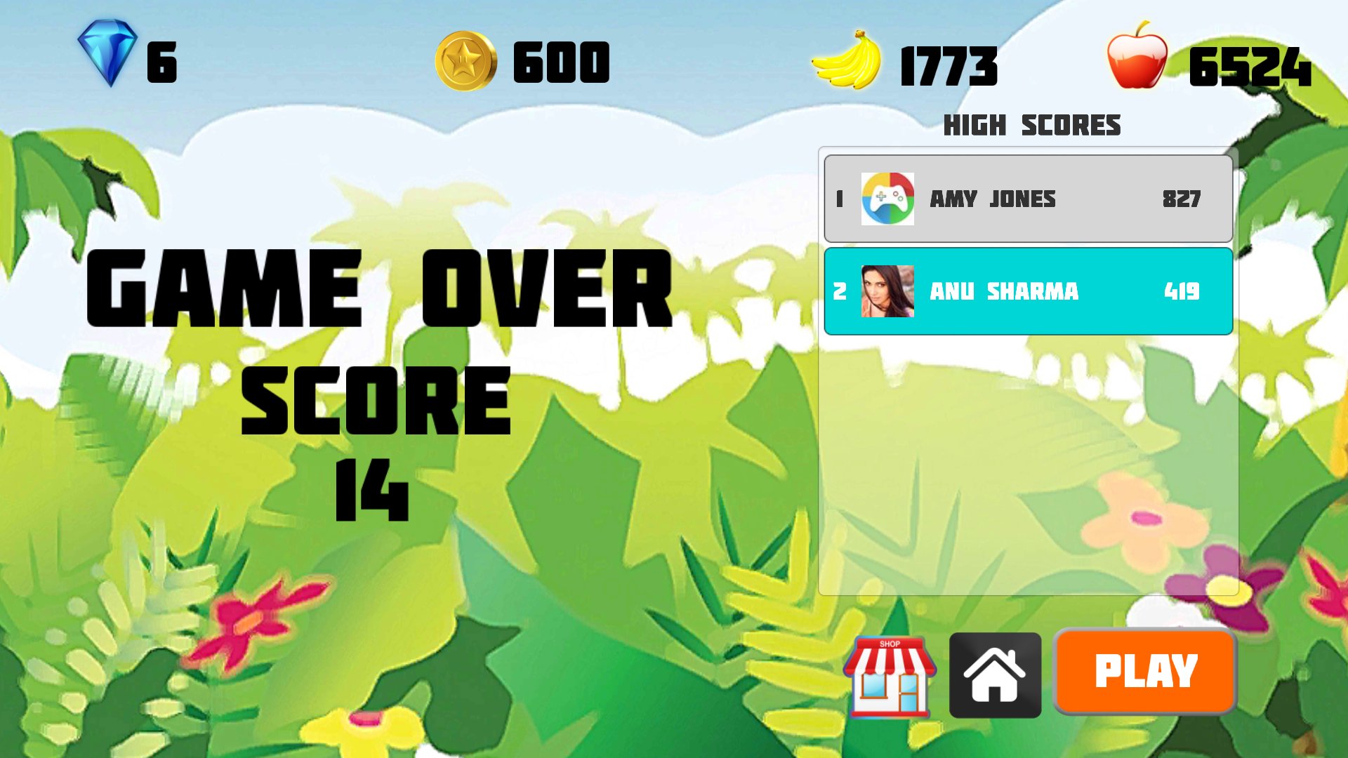 Eat bananas and apples to upgrade power, buy coins, and power ups.