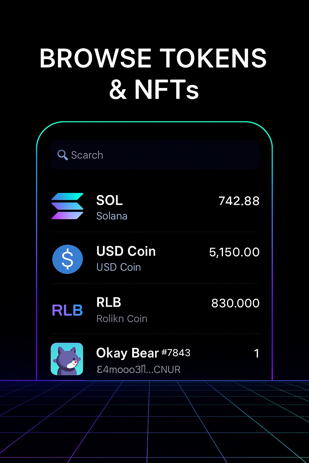 * Token & NFT Explorer – Dive into SPL tokens and NFTs with detailed metadata and ownership history.