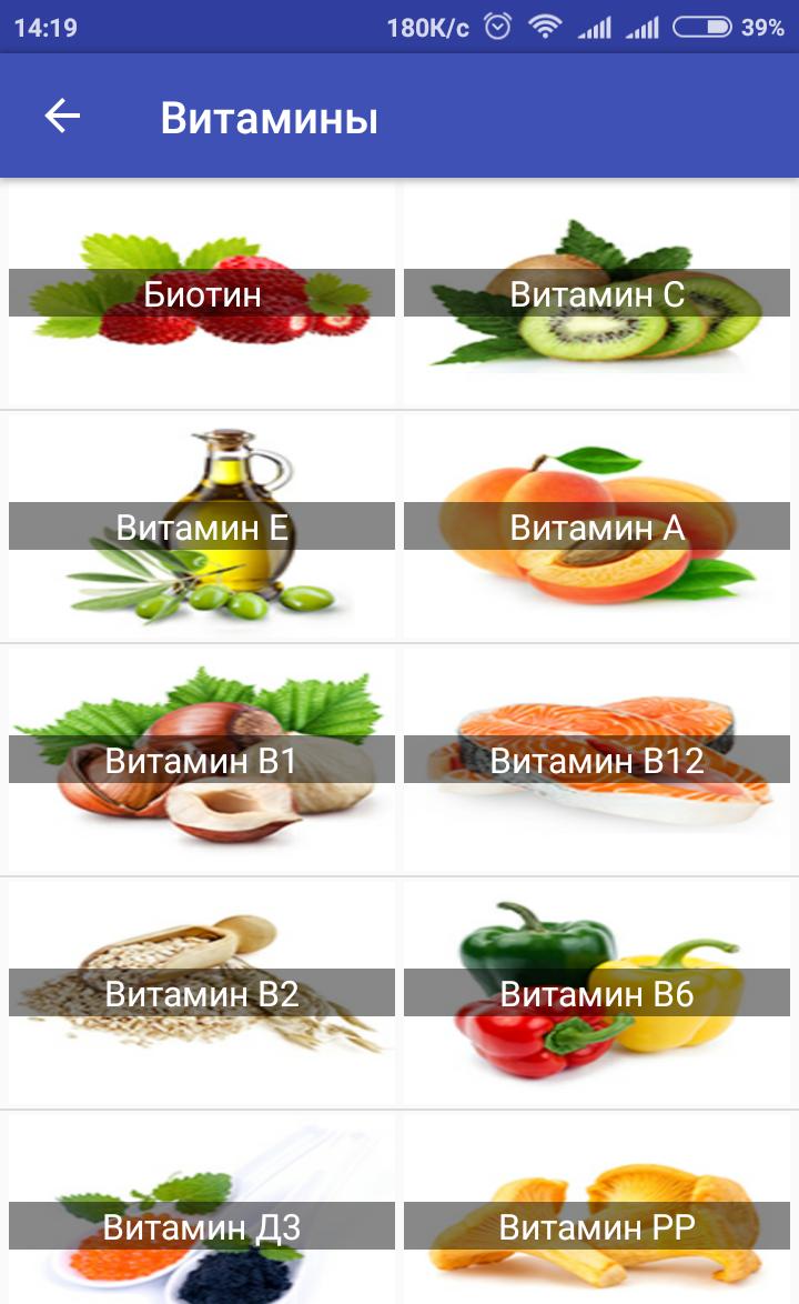 В этом приложение вы сможете узнать о витаминах, макро- и микроэлементах и лекарственных растениях.