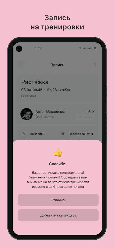 แอปพลิเคชั่นมือถือสำหรับลูกค้าของฟิตเนสคลับและสตูดิโอกีฬา