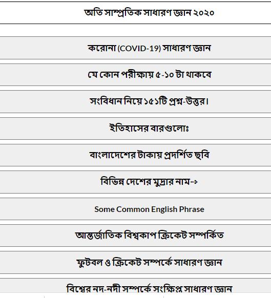 সাম্প্রতিক ঘটে যাওয়া সবগুলো সাধারণ জ্ঞান ২০২০।