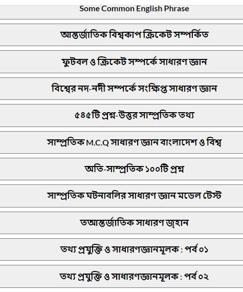 সাম্প্রতিক M.C.Q সাধারণ জ্ঞান বাংলাদেশ ও বিশ্ব