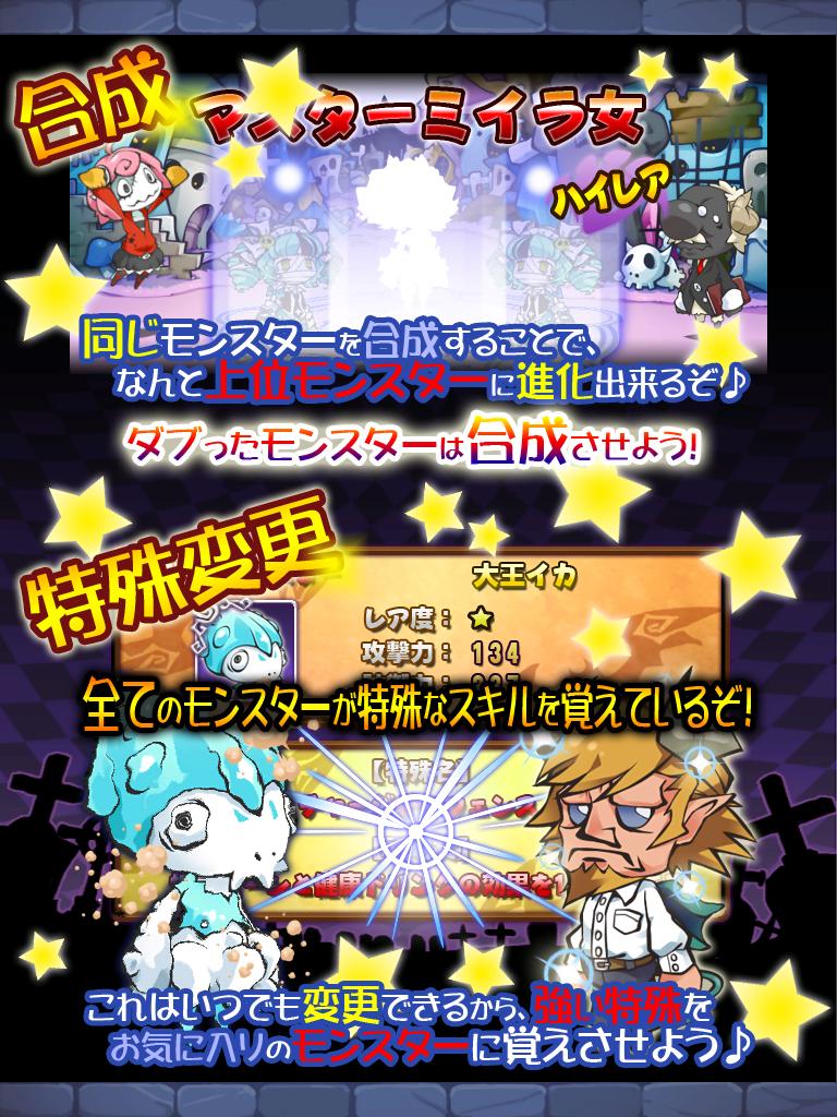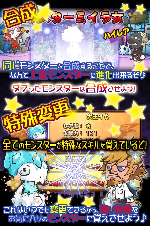 仲間になるモンスターたちは、合成進化でレアリティアップが可能!!