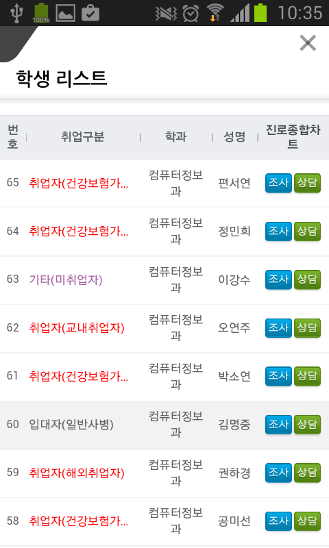 우리대학교 취업통계관리(조사) 전용 APP 입니다.