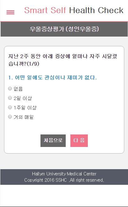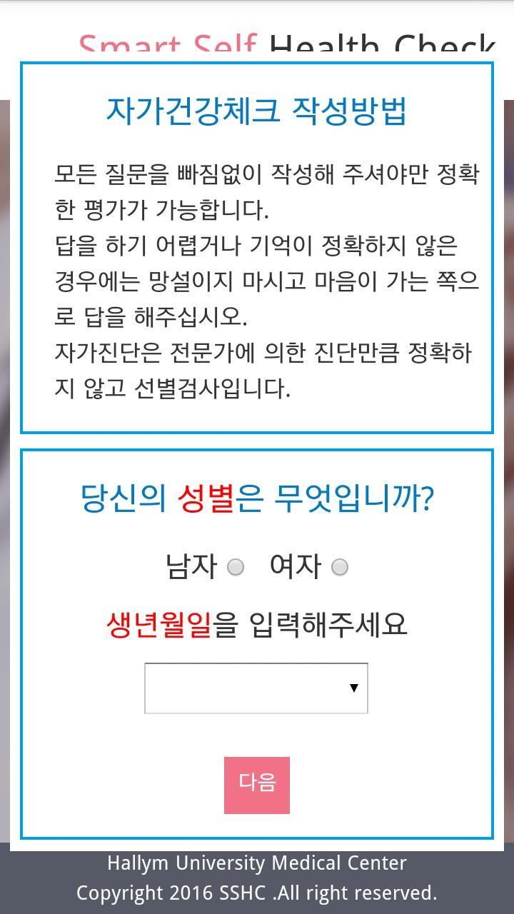 : 한림대학교 의료원에서 고객가이드 앱 사용 고객에게 제공하는 자가건강체크