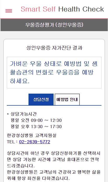 자가체크 결과에 따른 질환별 예방법 제공 및 상담/진료 연계를 할 수 있도록