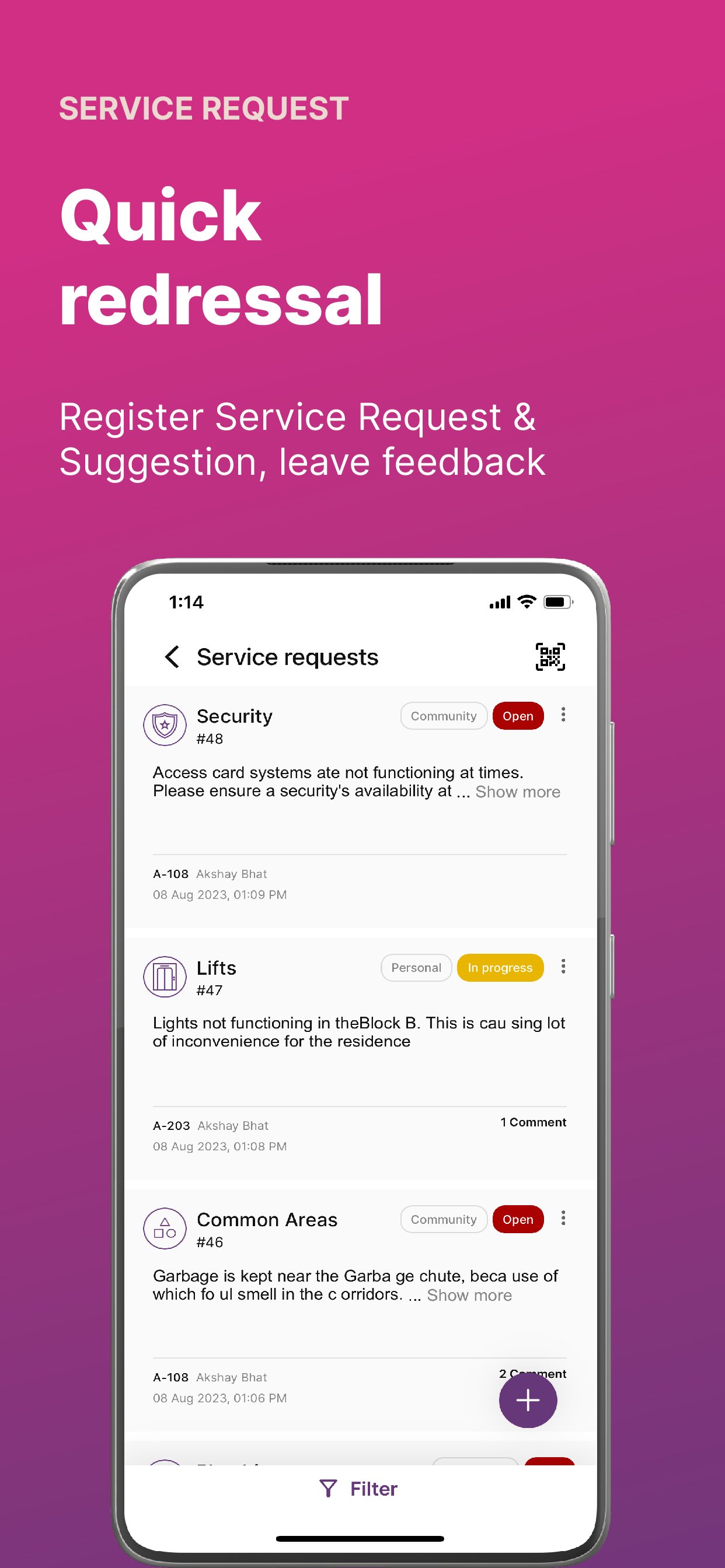 - เมื่อใช้แอป ANACITY คุณสามารถร้องเรียน/ร้องขอได้อย่างง่ายดาย หากทรัพย์สินใดทำงานผิดปกติ คุณสามารถสแกนรหัส QR ที่สร้างขึ้นไปยังสินทรัพย์นั้น ๆ และส่งไปยังผู้จัดการสิ่งอำนวยความสะดวกของชุมชนที่มีรั้วรอบขอบชิดของคุณ พวกเขาจะได้รับรายละเอียดของสินทรัพย์และแก้ไขอย่างรวดเร็ว คุณยังสามารถติดตามความคืบหน้าได้ และหากปัญหาไม่ได้รับการแก้ไขในช่วงเวลาที่กำหนด การร้องเรียนจะถูกส่งต่อโดยอัตโนมัติ