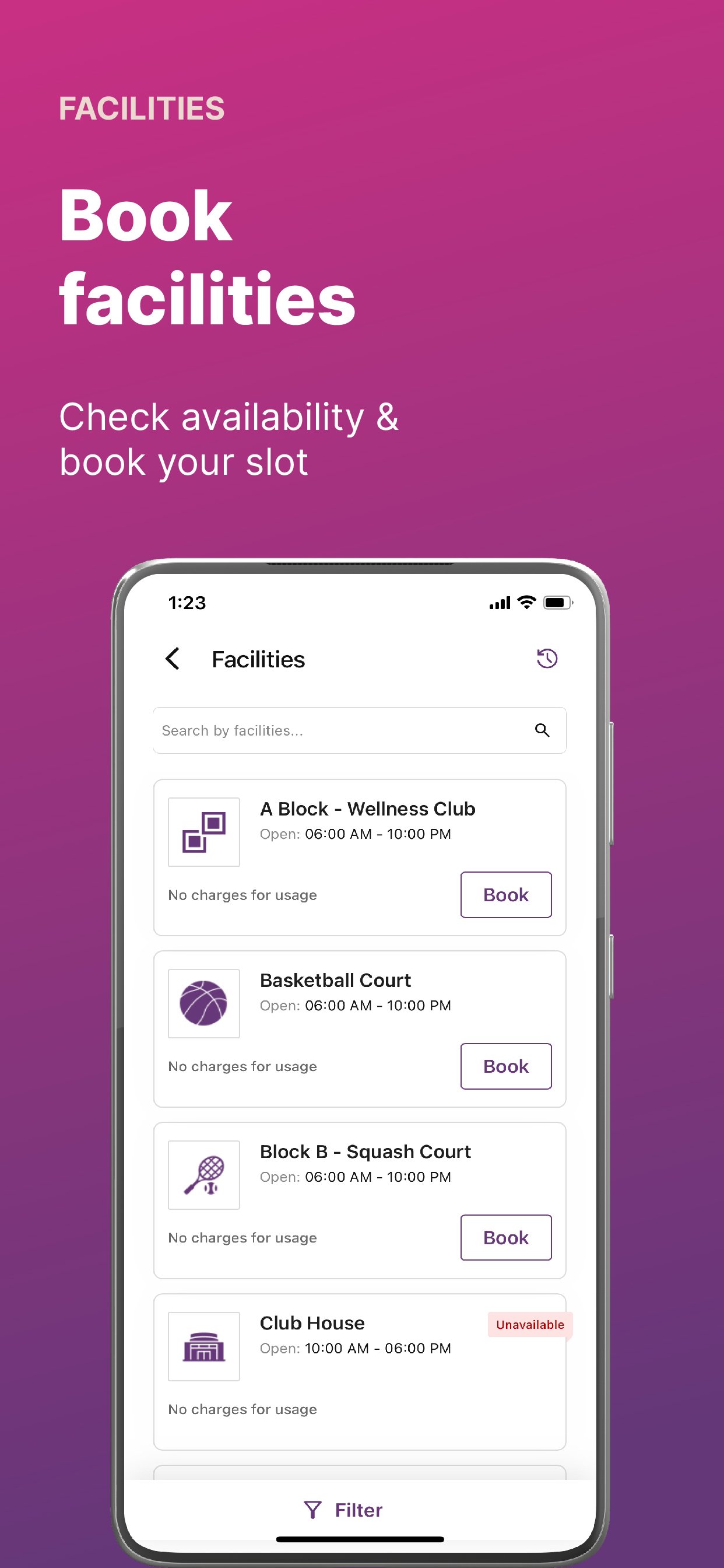 - ไม่ต้องรอใช้สิ่งอำนวยความสะดวกของชุมชนรั้วรอบขอบชิดของคุณอีกต่อไป! ANACITY ช่วยให้คุณสามารถตรวจสอบว่ามีสิ่งอำนวยความสะดวกให้บริการเมื่อใดและจองไว้ล่วงหน้า
