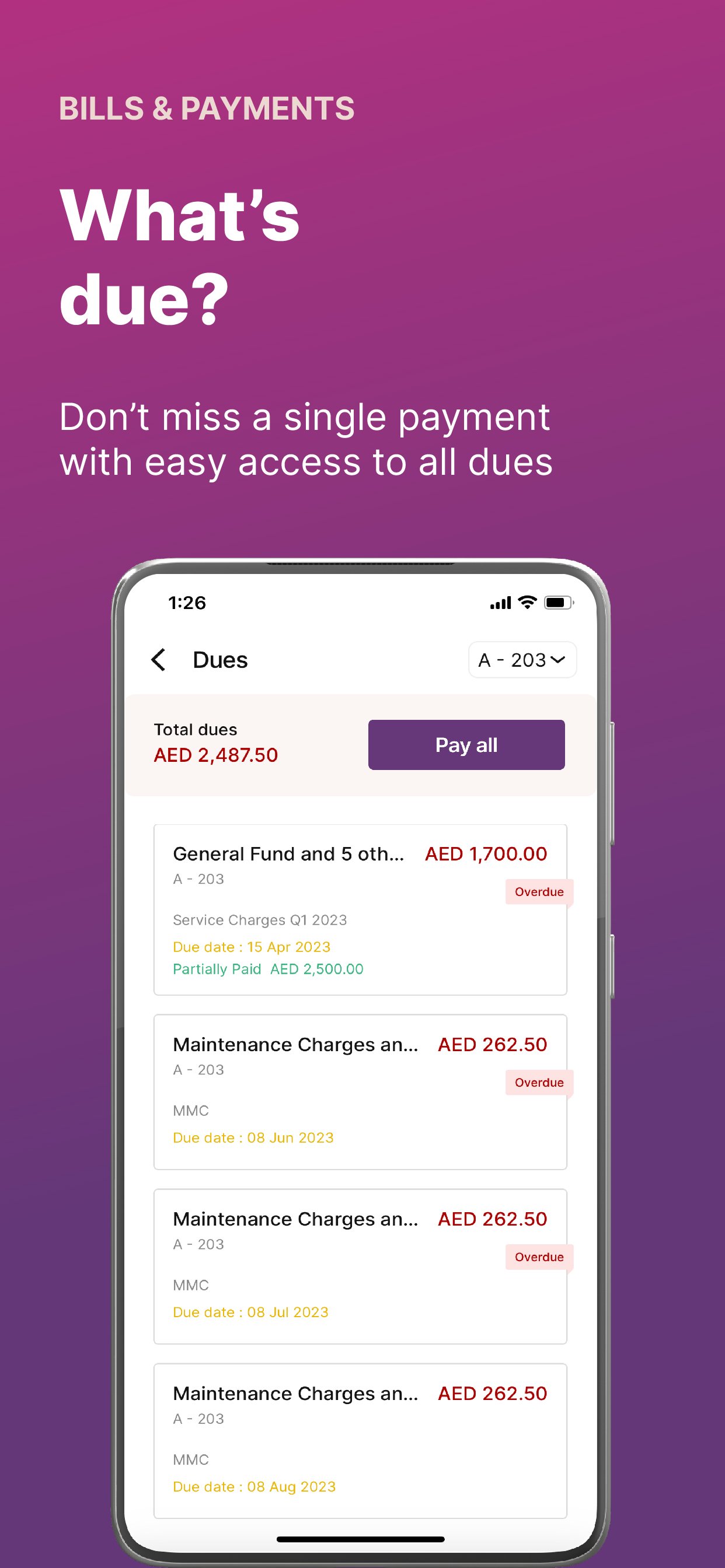 - รวบรวมค่าบริการและค่าธรรมเนียมผ่านแอพและส่งการแจ้งเตือนอัตโนมัติไปยังผู้อยู่อาศัยที่ผิดนัด
