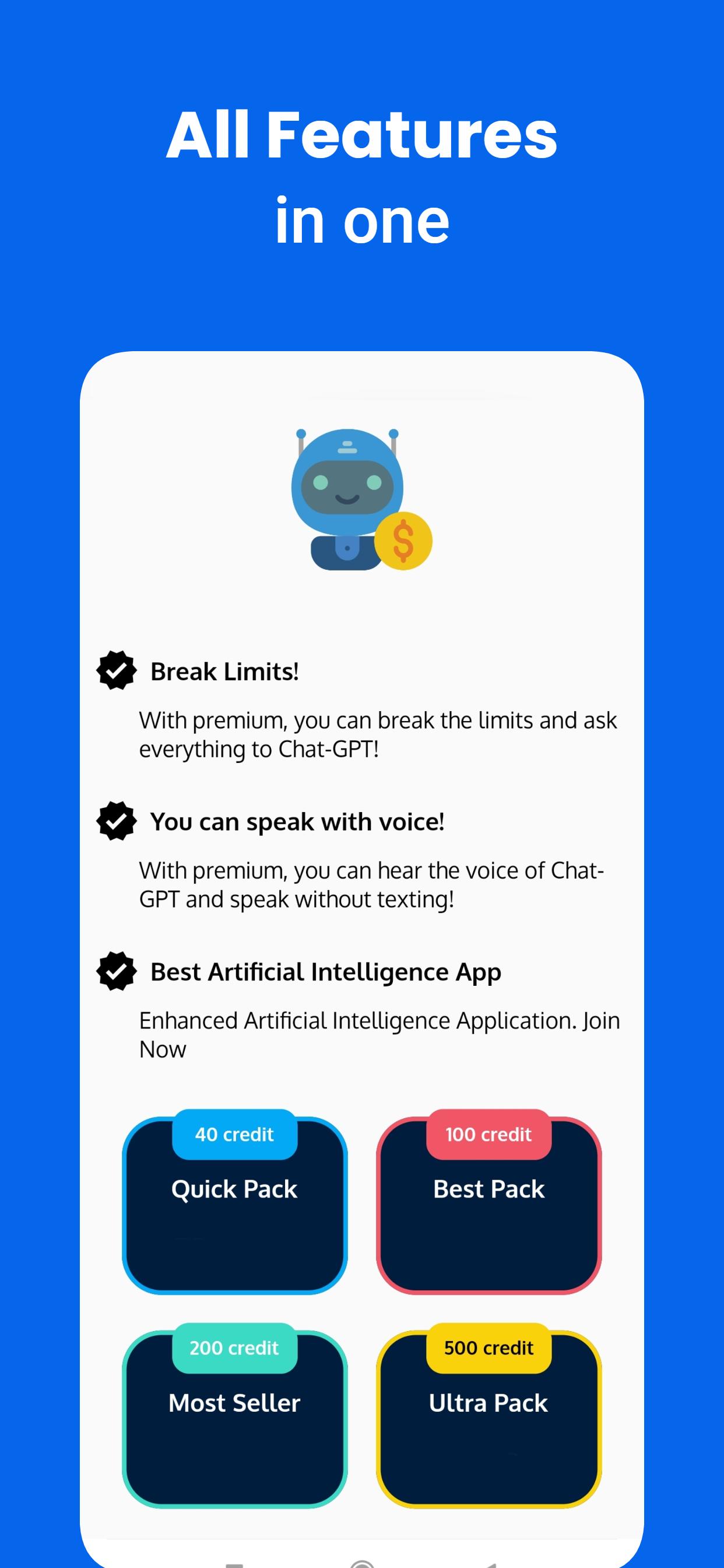 ไม่ว่าคุณจะเป็นนักเรียนที่ต้องการเขียนบทความเชิงสร้างสรรค์ นักเขียนคำโฆษณามืออาชีพ หรือเพียงแค่ผู้ที่ต้องการสื่อสารอย่างมีประสิทธิภาพ แอปนี้เป็นโซลูชันที่สมบูรณ์แบบสำหรับคุณ! การใช้ AI ที่ทรงพลังที่สุดในตลาด AI Chat Bot นี้ช่วยให้คุณแสดงออกถึงสไตล์และน้ำเสียงต่างๆ ได้อย่างง่ายดาย ในขณะเดียวกันก็รับประกันว่าไวยากรณ์ เครื่องหมายวรรคตอน และการสะกดของคุณถูกต้อง
